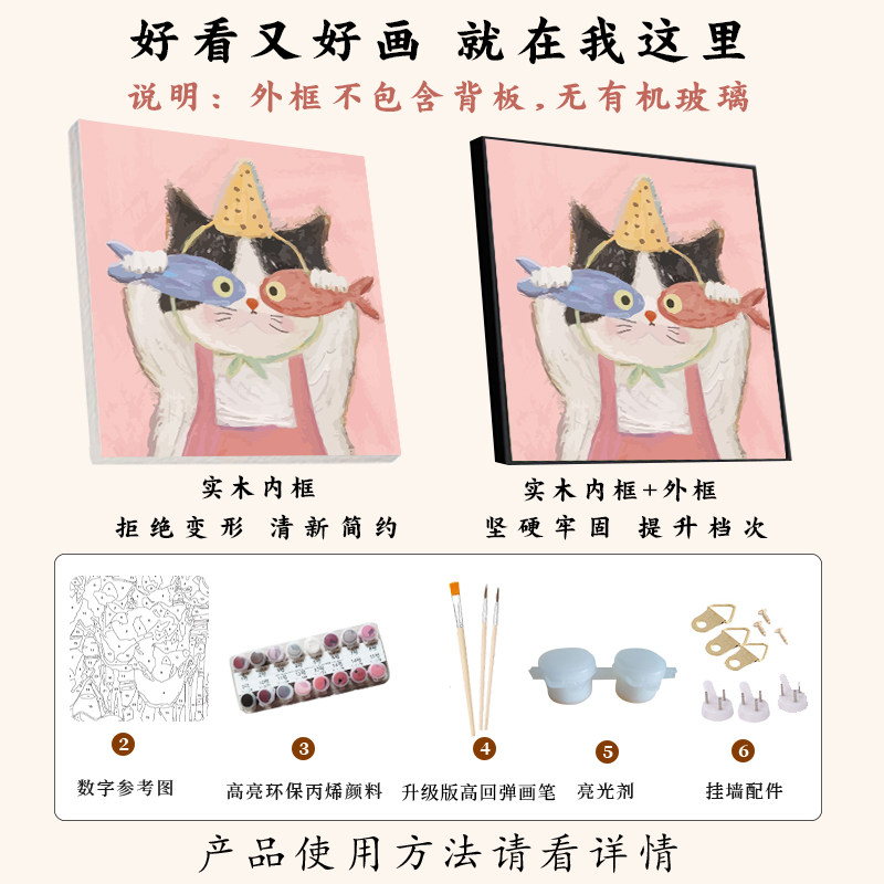 丙烯卡通可爱猫咪猫干数字油彩画