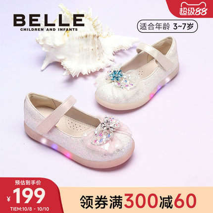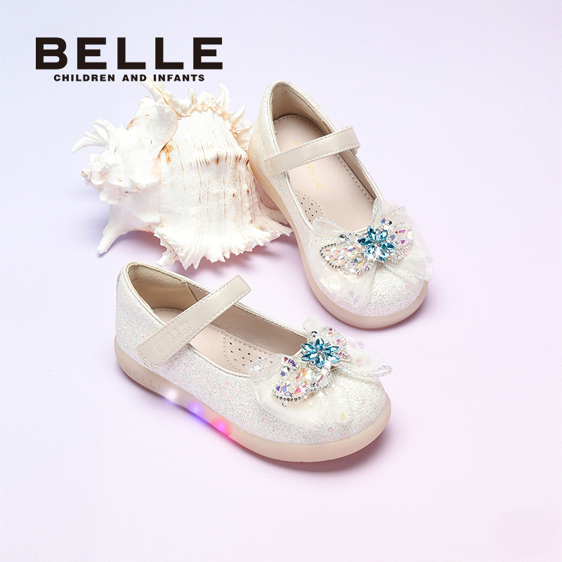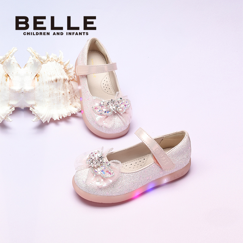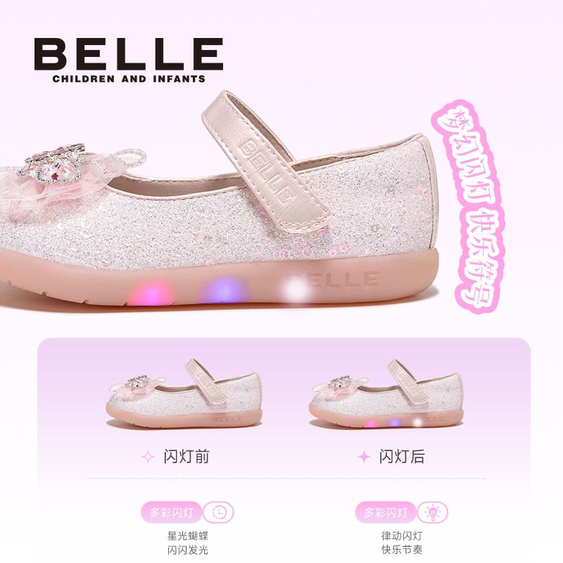 百丽童鞋2025秋季新款女童星花闪钻公主灯鞋时尚百搭时装鞋表演鞋