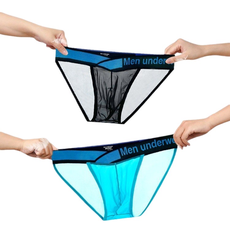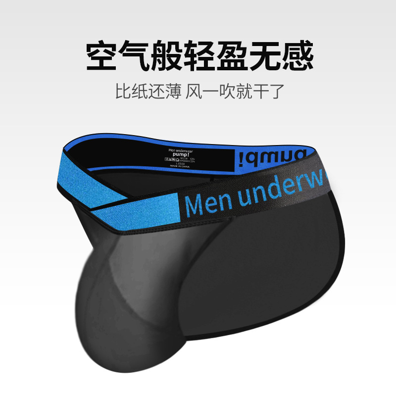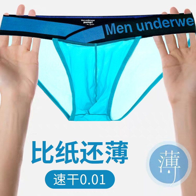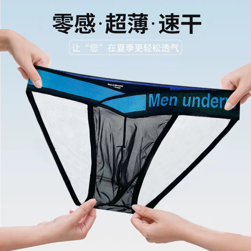 青年男士运动内裤高叉透明超薄冰丝三角裤性感镭射V型腰带潮男生