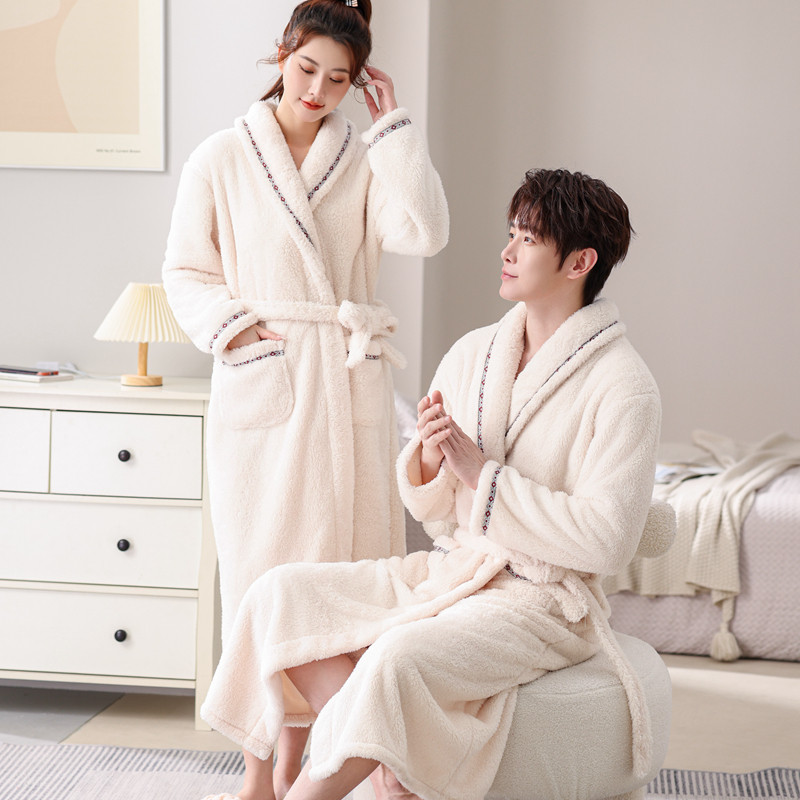 情侣睡袍秋冬季珊瑚绒浴袍加厚加长款酒店风女法兰绒睡衣男家居服
