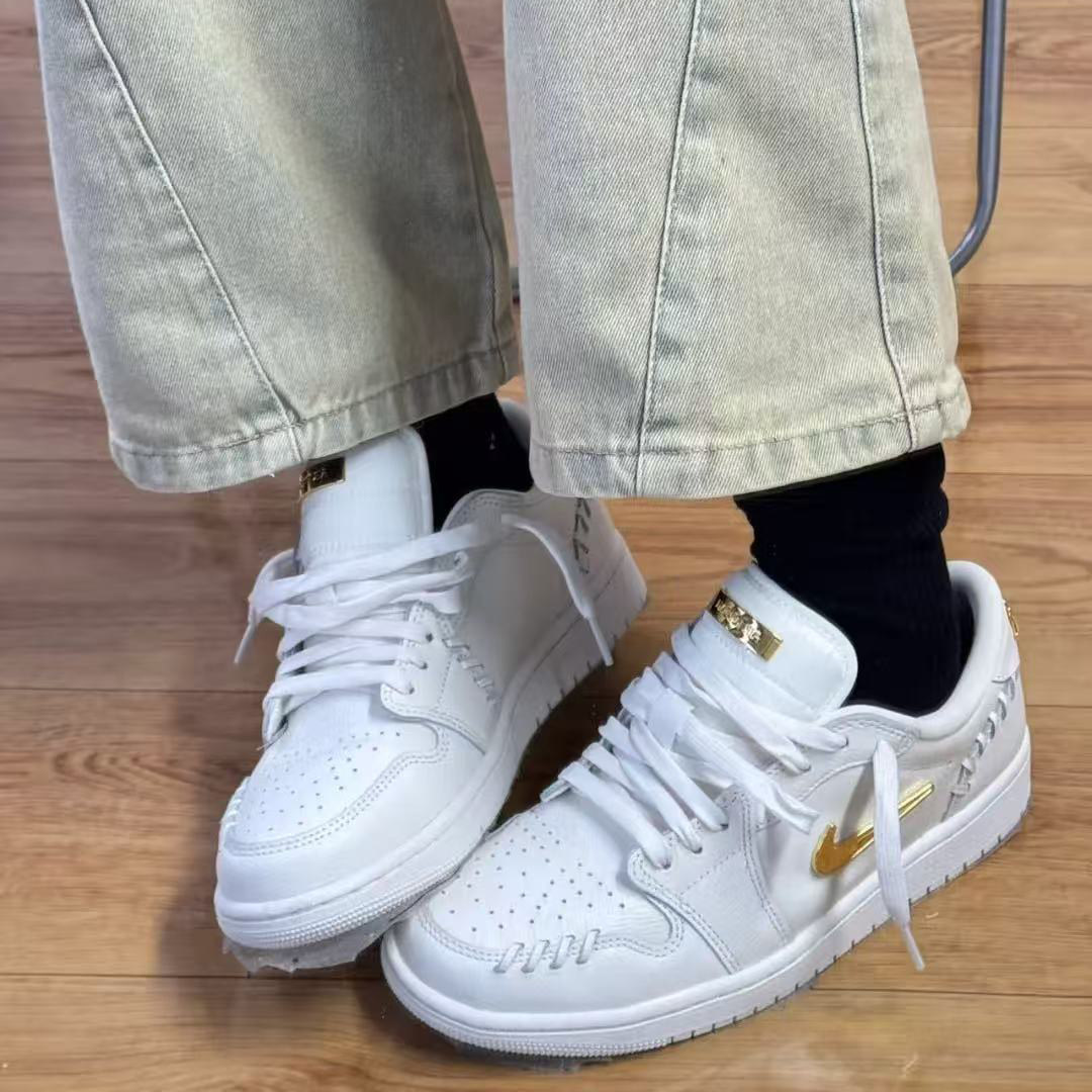 Nike耐克Air Jordan AJ1补丁系列灰黑金低帮复古滑板鞋男女FN5032