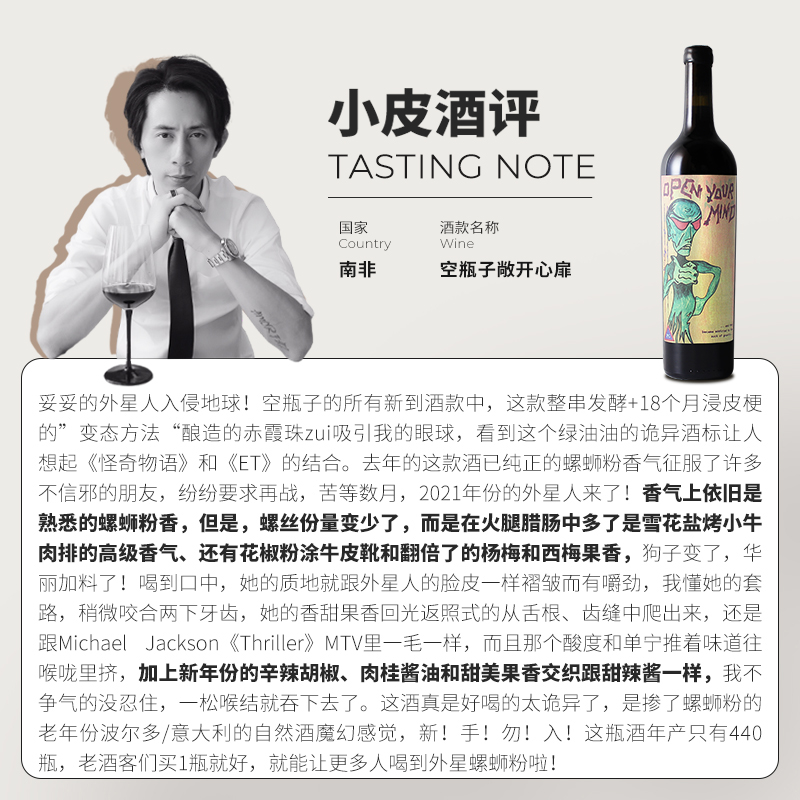 狂人膜拜酒!南非空瓶子65岁退休干红/无为大师干红葡萄酒小皮