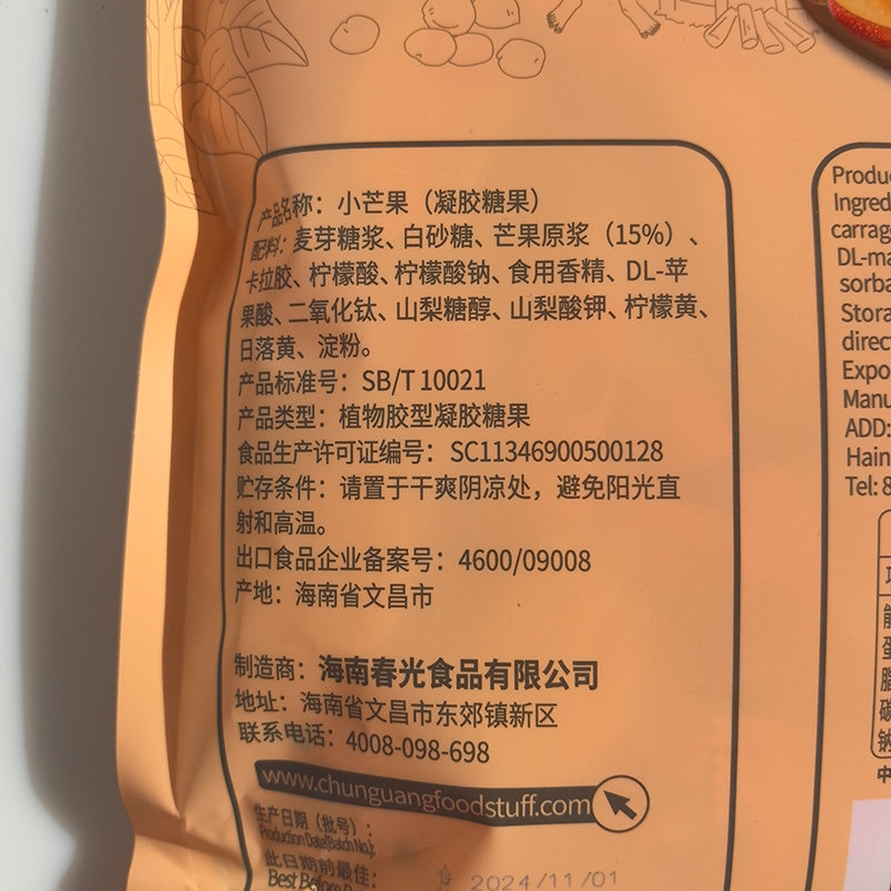 春光小芒果480g果汁软糖零食水果糖原浆芒果海南特产糖果食品三亚