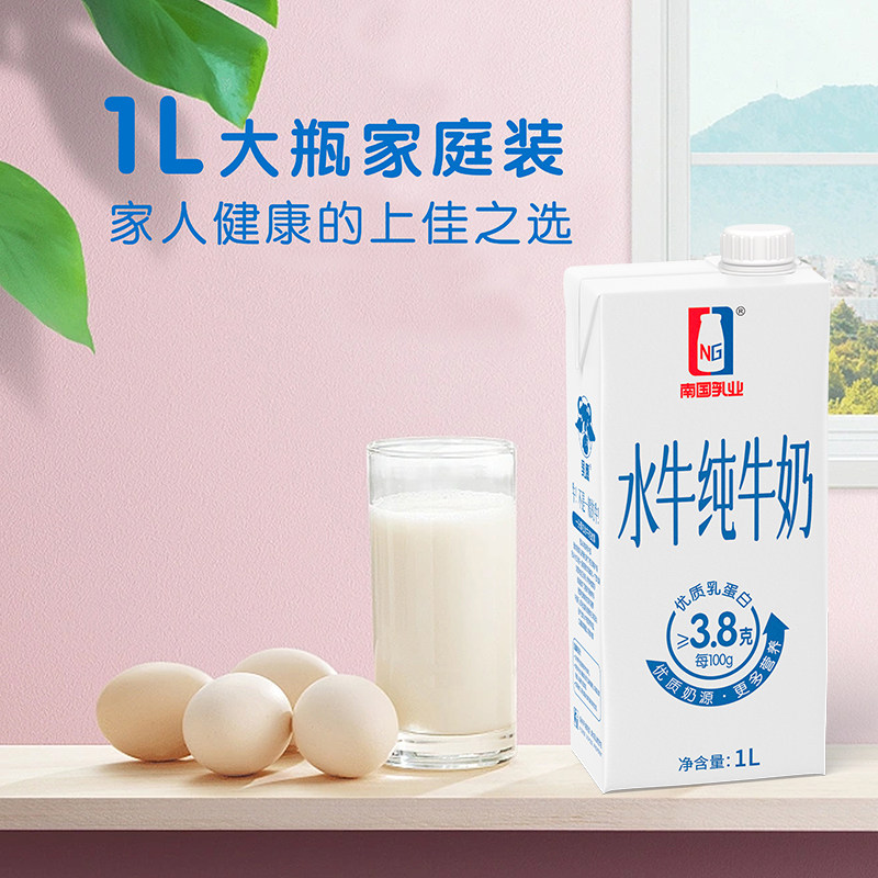 南国乳业 水牛纯牛奶整箱1L装3.8g乳蛋白 广西水牛奶学生儿童纯奶