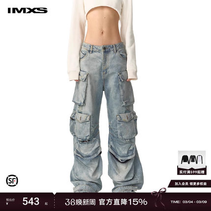 IMXS【明星同款】多口袋炒盐牛仔裤工装重工水洗破洞裤子