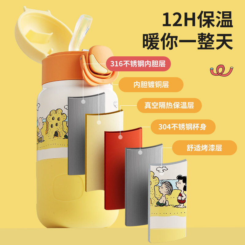史努比儿童保温杯女生高颜值学生吸管水杯316食品级宝宝可爱水壶