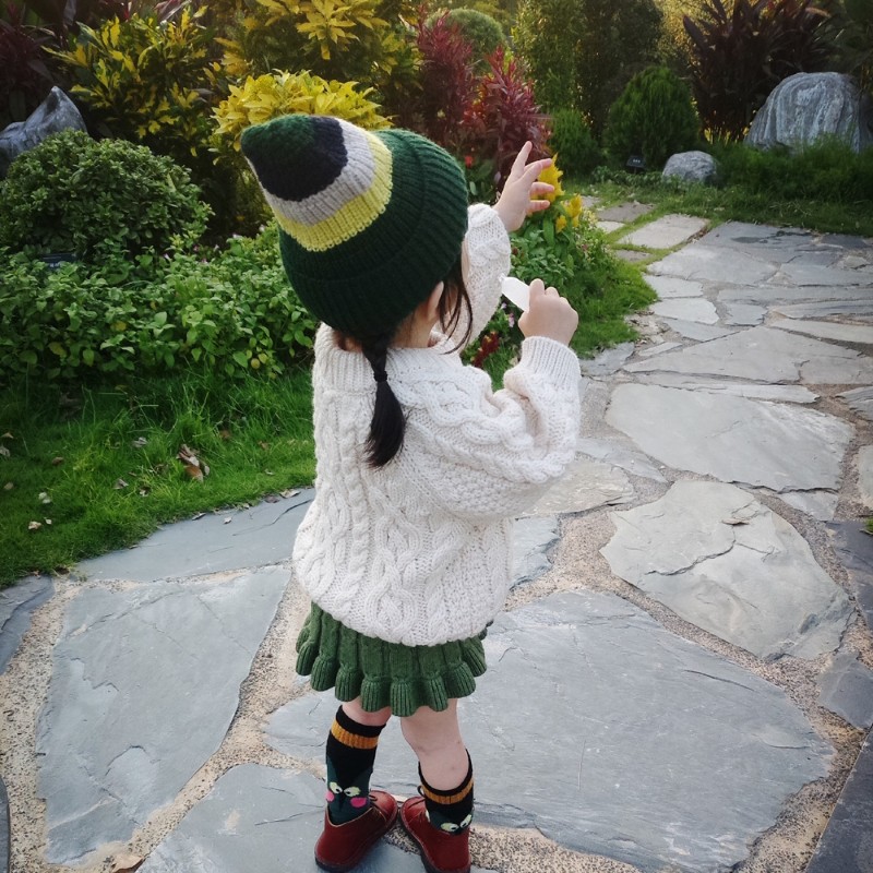 女童半身裙洋气时髦春秋装秋季儿童针织裙宝宝绿色百褶裙短裙裙子