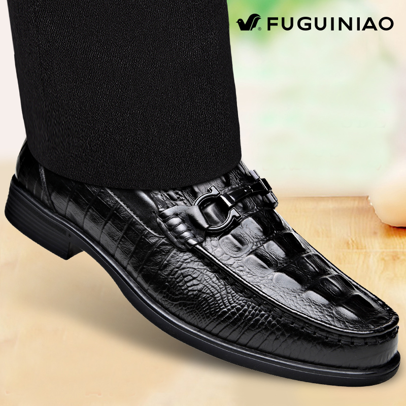 富贵鸟豆豆鞋真皮男鞋2025新款鳄鱼纹软底牛皮透气商务休闲皮鞋男