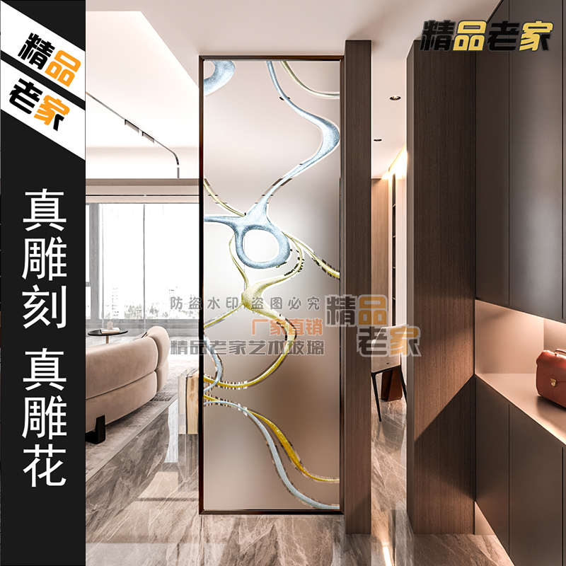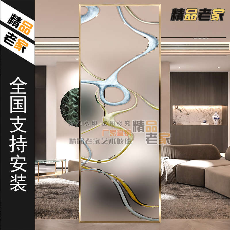 订制磨砂透光钢化彩色高端艺术玻璃隔断屏风入户进门玄关客厅欧式