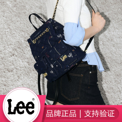 Lee女牛仔帆布小双肩包通勤电脑包初高中大学生书包少女背包