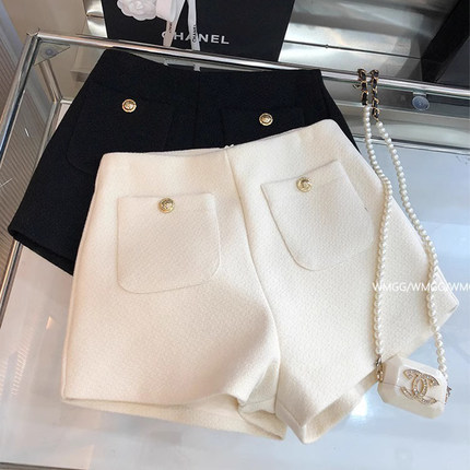 毛呢短裤女2025新款秋冬高腰显瘦直筒阔腿小香风外穿a字休闲短裤