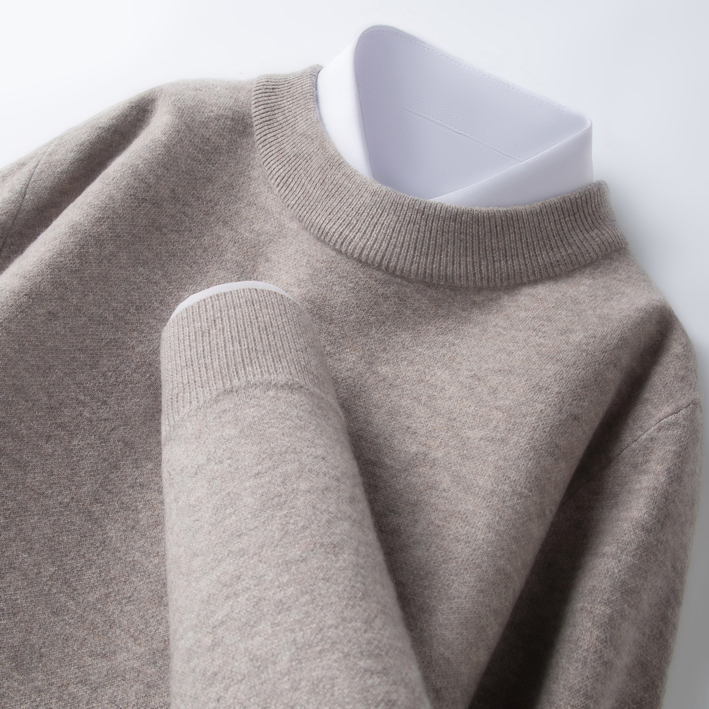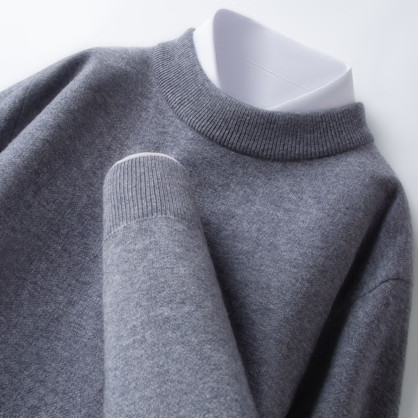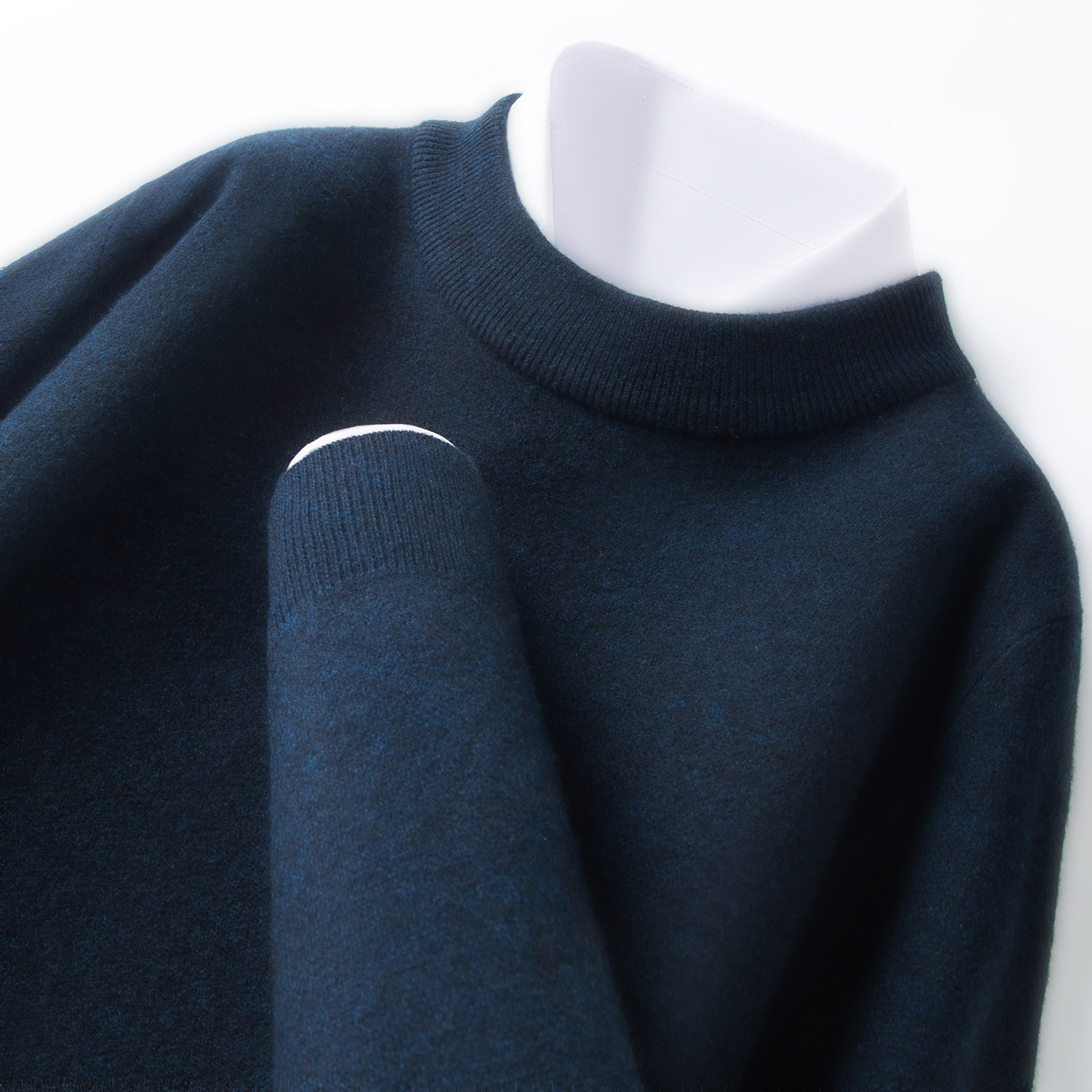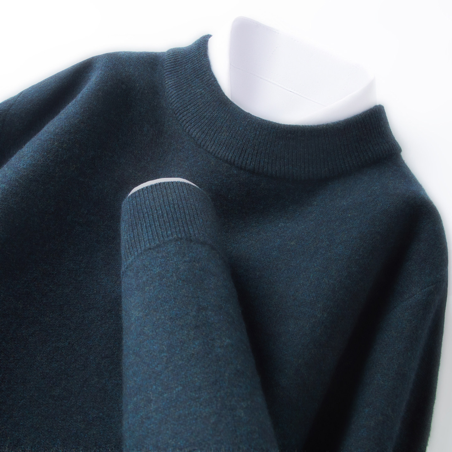 鄂尔多斯市100%山羊绒衫男士半高领毛衣加厚款保暖纯色针织羊毛衫