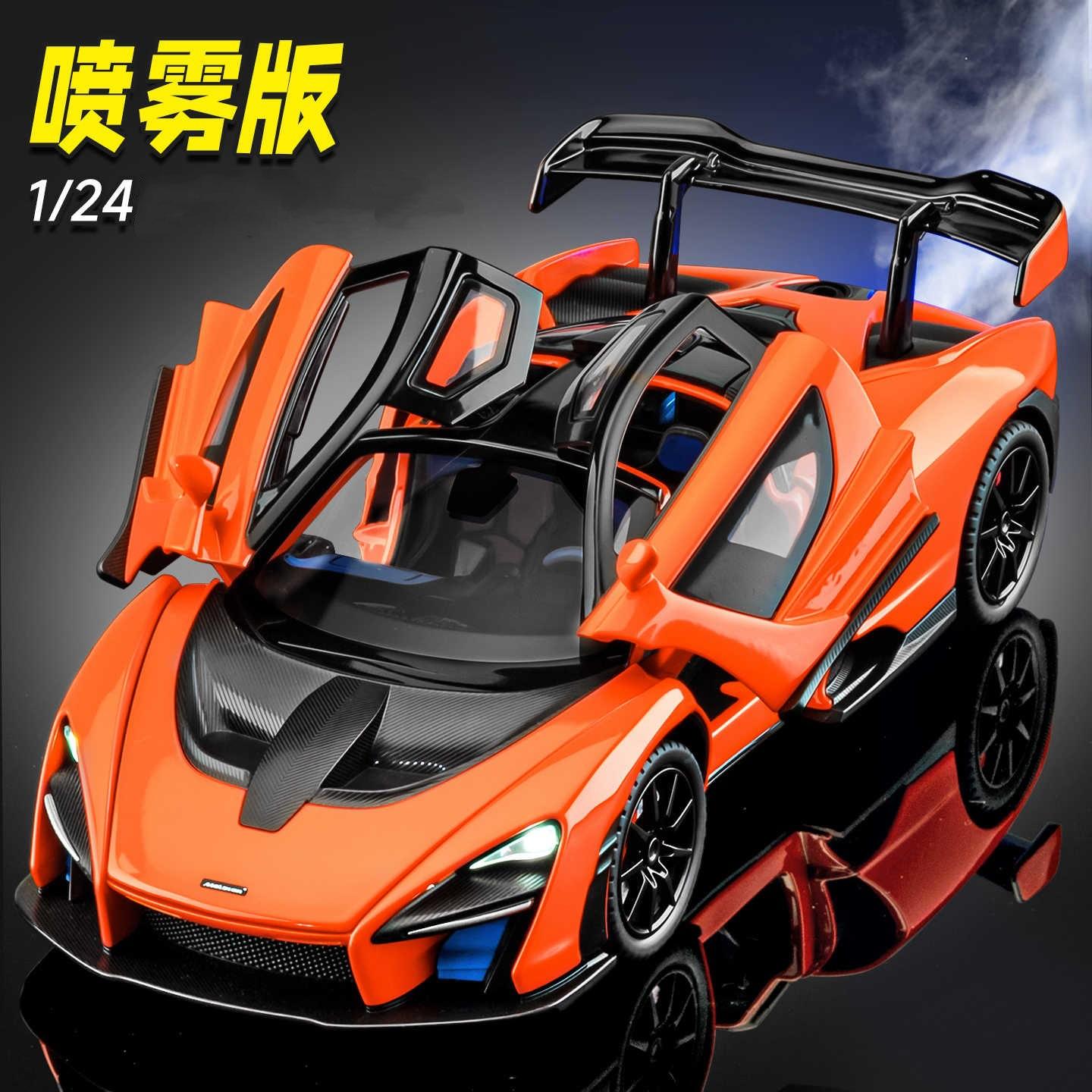 新款1:24迈凯仑塞纳喷雾合金汽车模型仿真跑车摆件儿童玩具车礼物