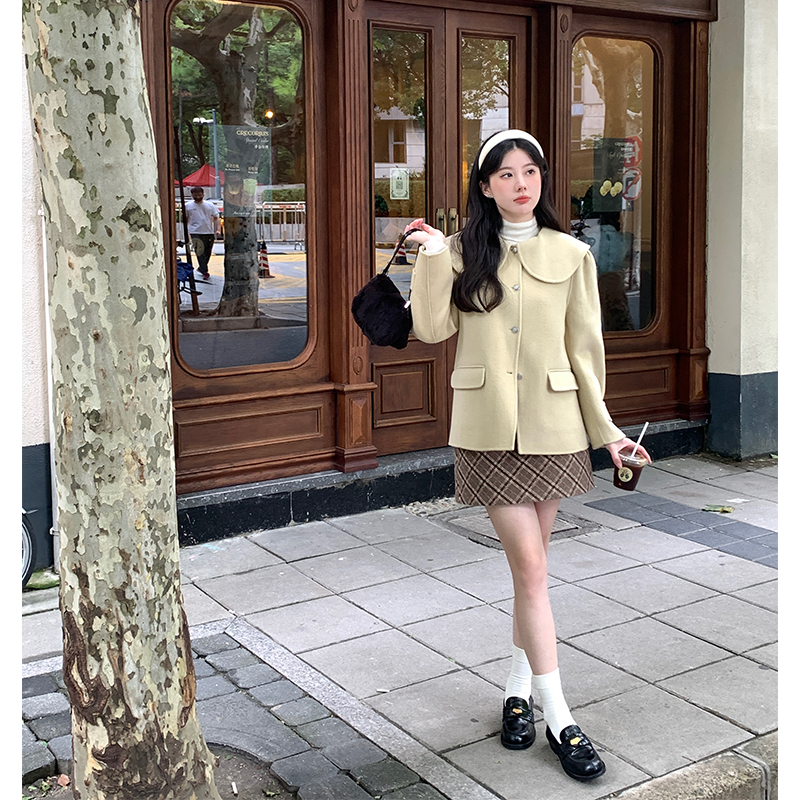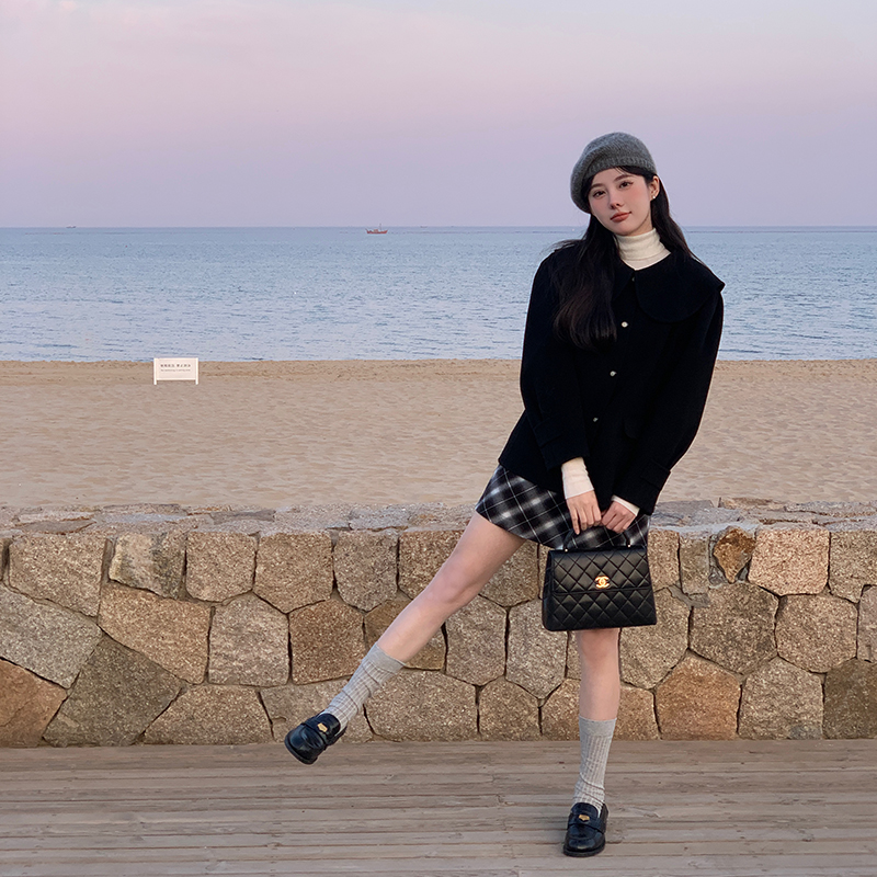 VASSE美蟹秋冬复古百搭格纹半身裙女2022新款a字短裙小个子包臀裙