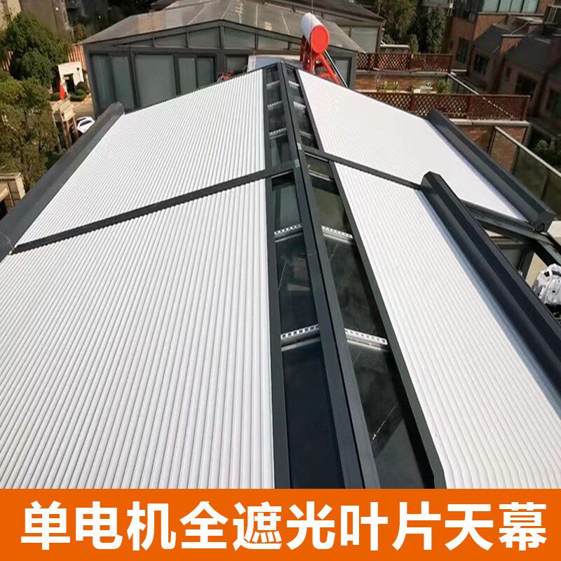 户外遮阳帘铝合金阳光玻璃房遮阳顶帘电动遥控升降X室外卷帘窗帘