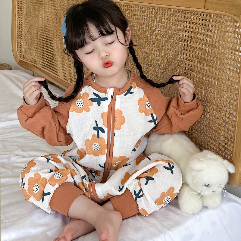 宝宝连体睡衣春秋薄款男童女童长袖夏季睡袋婴儿童纯棉纱布家居服