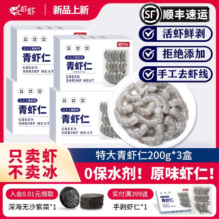 【无保水剂】特大虾仁鲜冻无冰特级新鲜冷冻去虾线虾肉低脂青虾仁