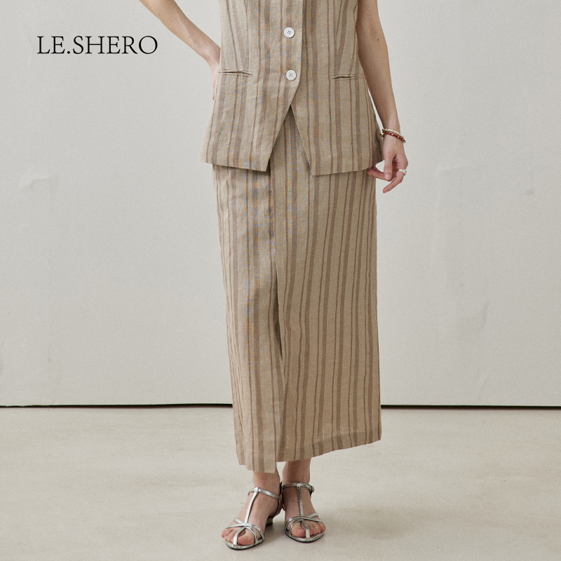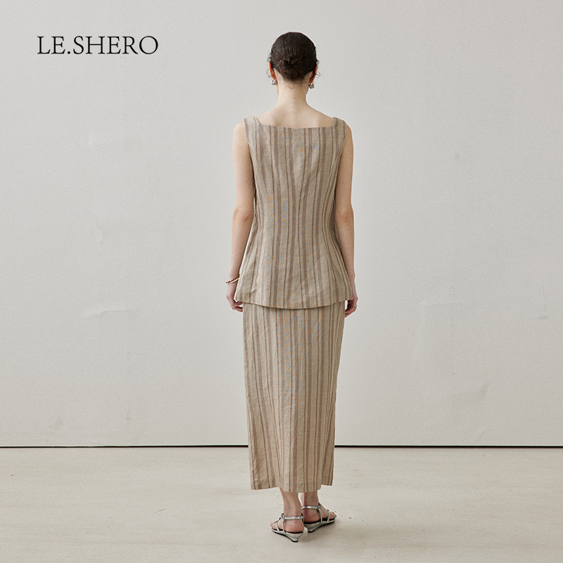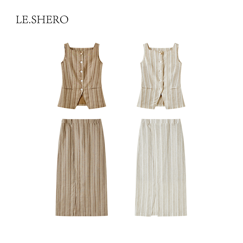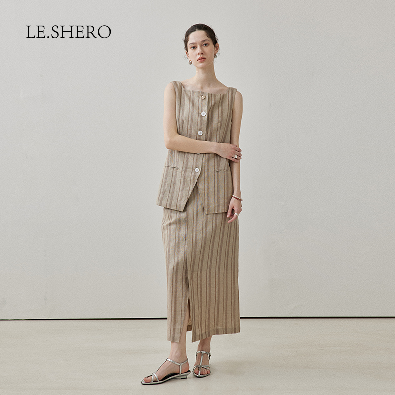 LE.SHERO原创设计时尚休闲OL风竖条纹背心马甲裙子两件套装