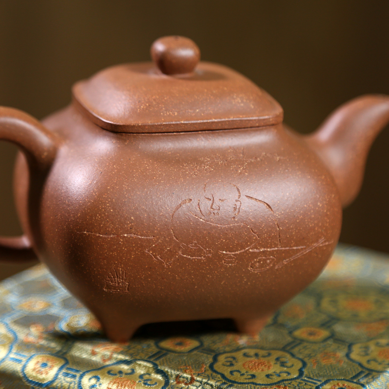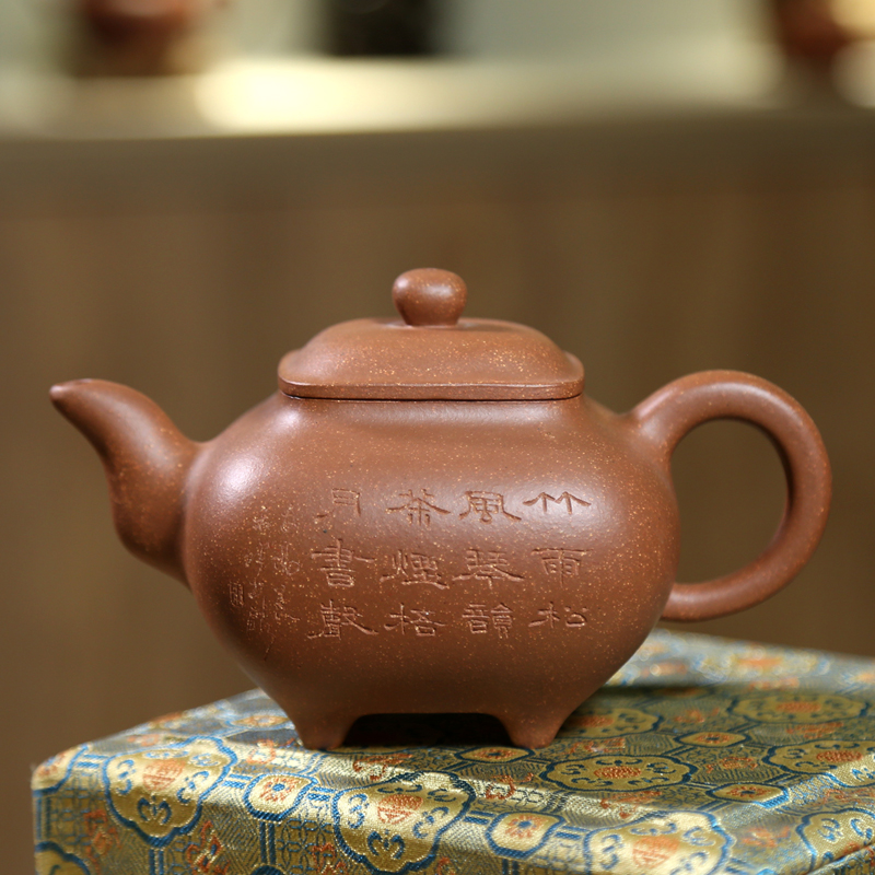 宜兴紫砂壶孤品泡茶壶名家刻绘吴竹霞纯手工350CC原矿老金段传炉