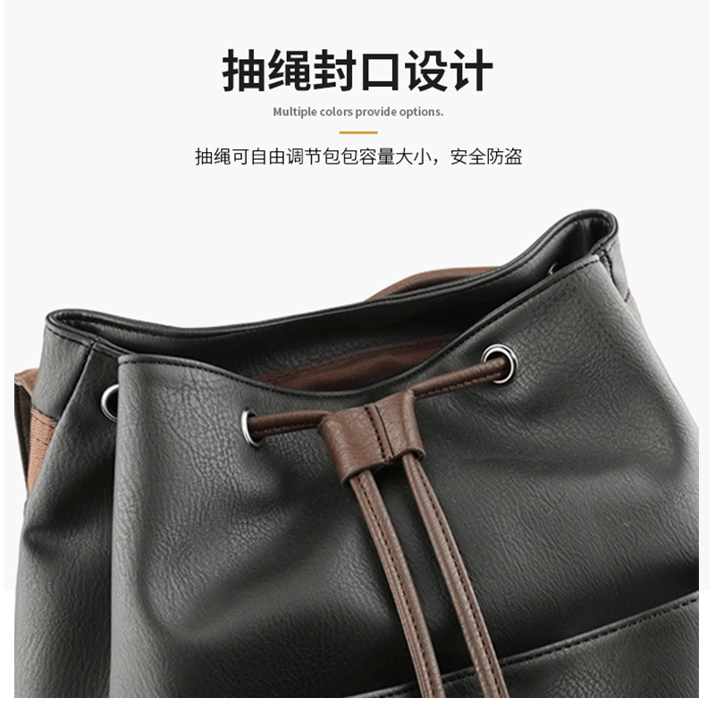 皮质防水休闲双肩包男士背包大学生书包潮流时尚旅行包商务电脑包
