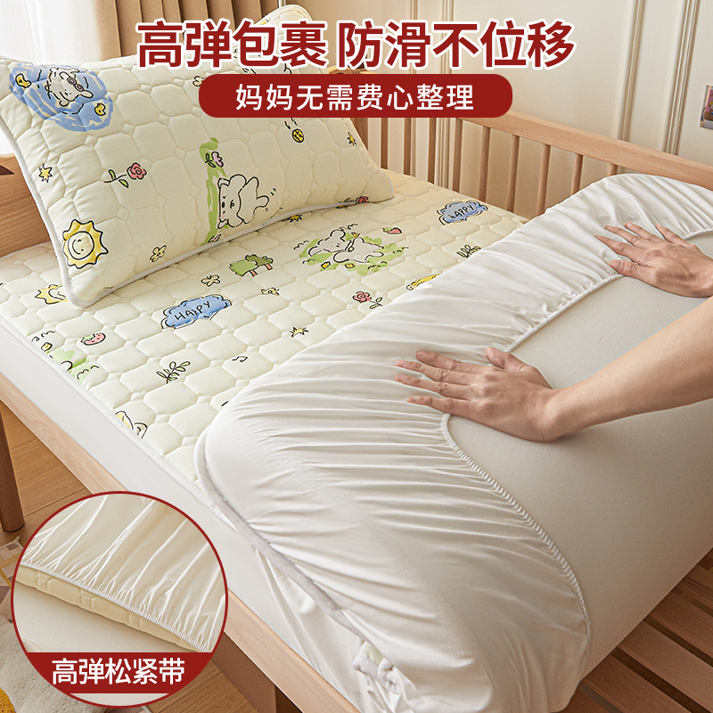 加厚夹棉儿童床笠纯棉a类母婴级四季通用婴儿拼接床可定制床垫套