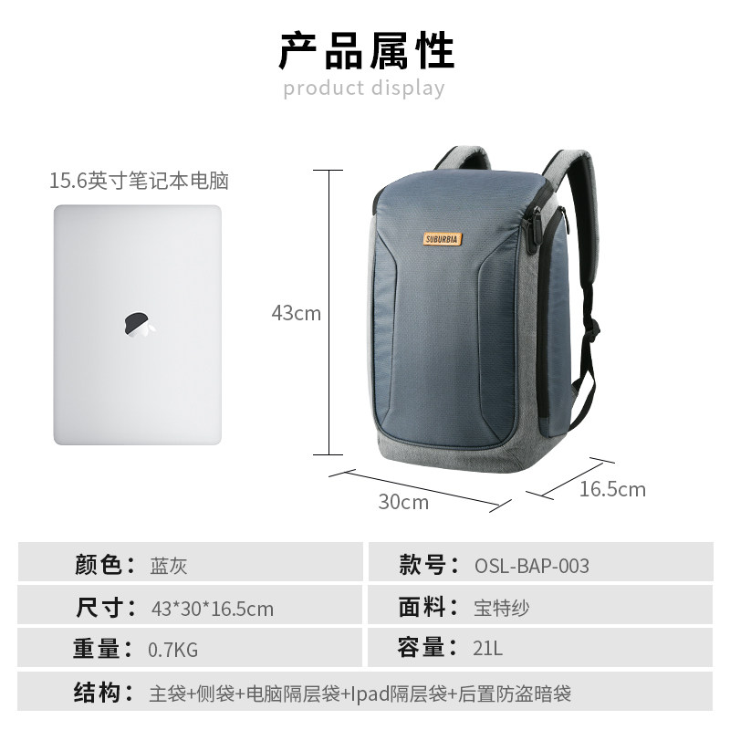 suburbia运动双肩包男学生书包