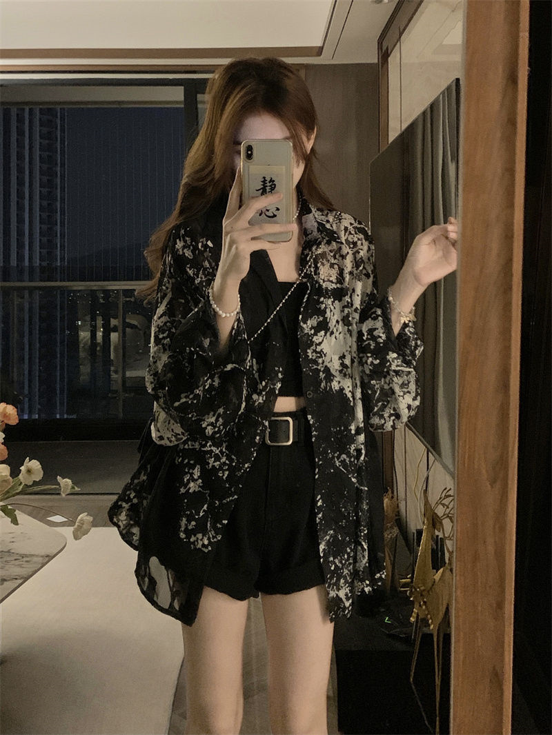 胖妹妹300斤超大码水墨画印花设计感时髦夏季长袖百搭衬衫外套女
