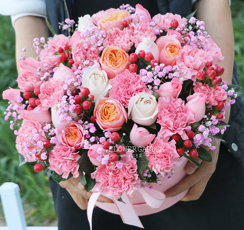 母亲节北京鲜花速递康乃馨粉蝴蝶玫瑰红豆粉满天星混搭礼盒生日