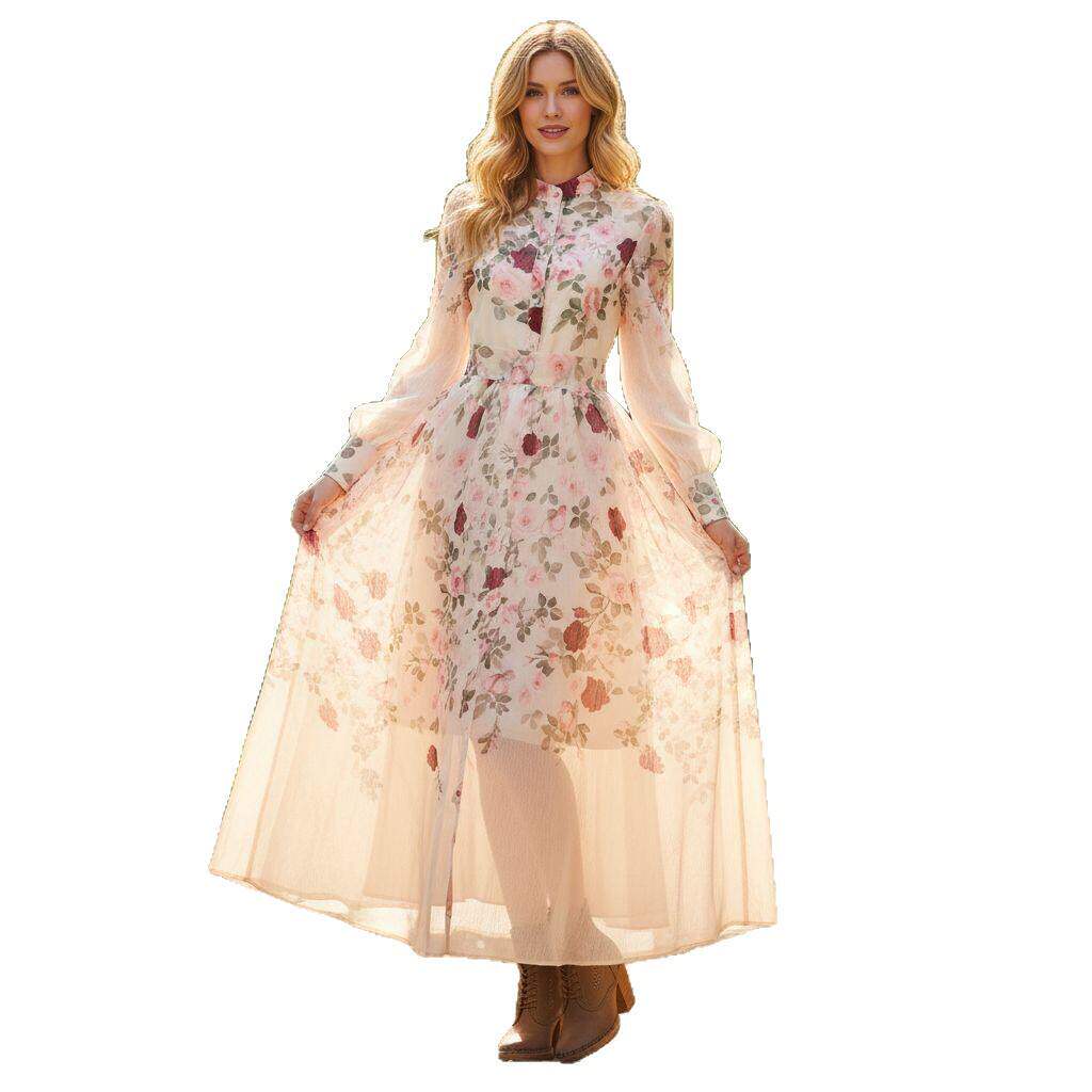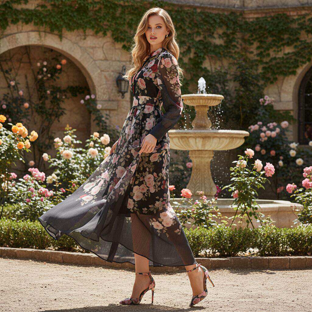 2025秋季佩斯利定位印花玫瑰花半松紧腰大裙摆套装裙两件套
