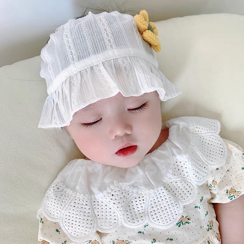 婴儿帽子夏季薄款公主宫廷帽洋气女宝宝无顶遮阳防晒新生儿胎帽