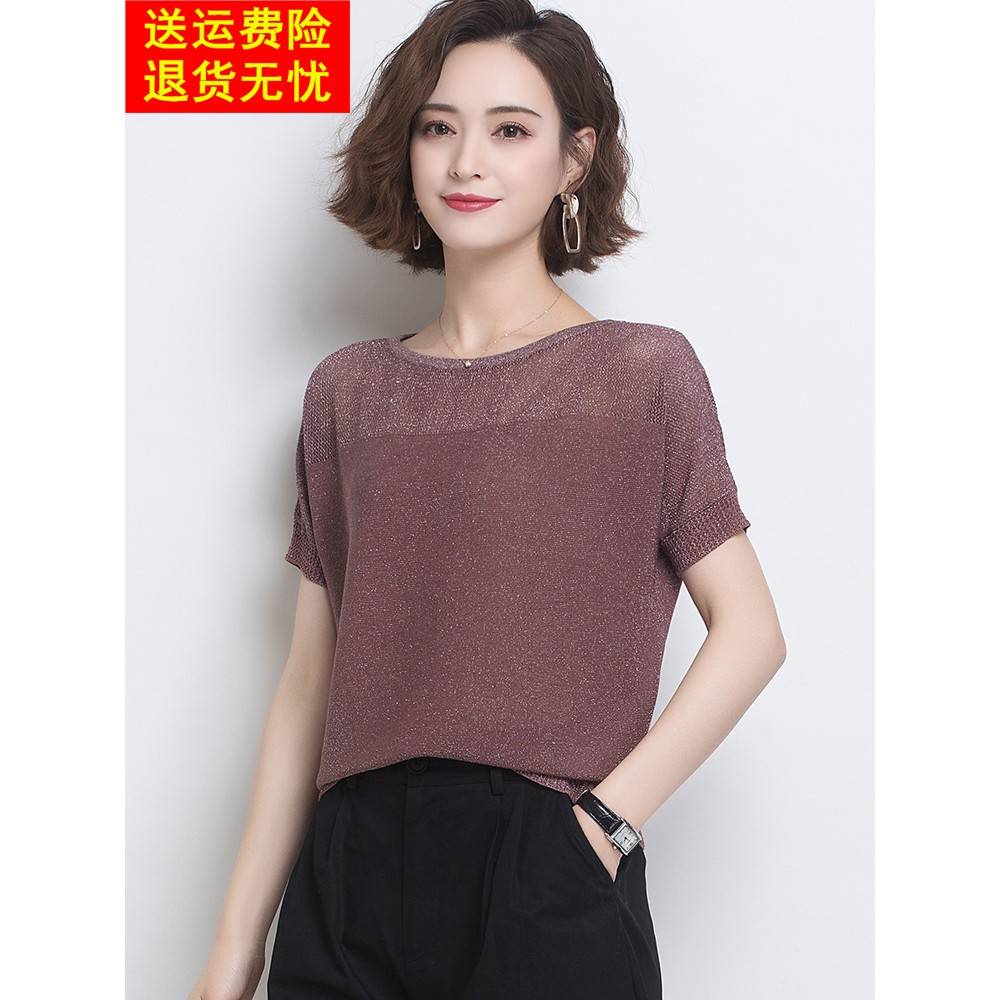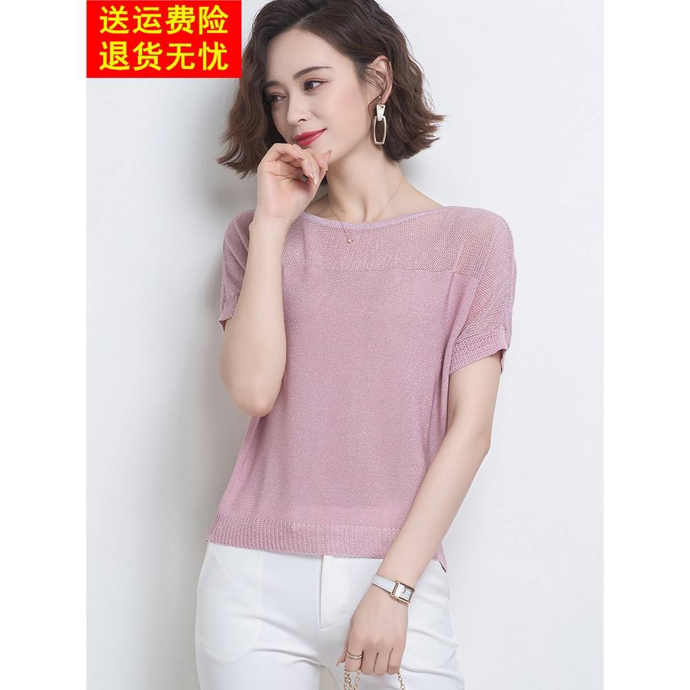 鄂尔多斯市短袖一字领t恤女士夏装桑蚕丝薄款体桖冰丝针织衫上衣