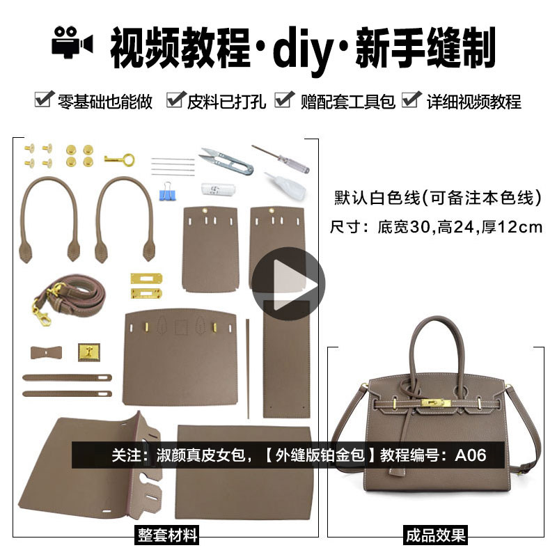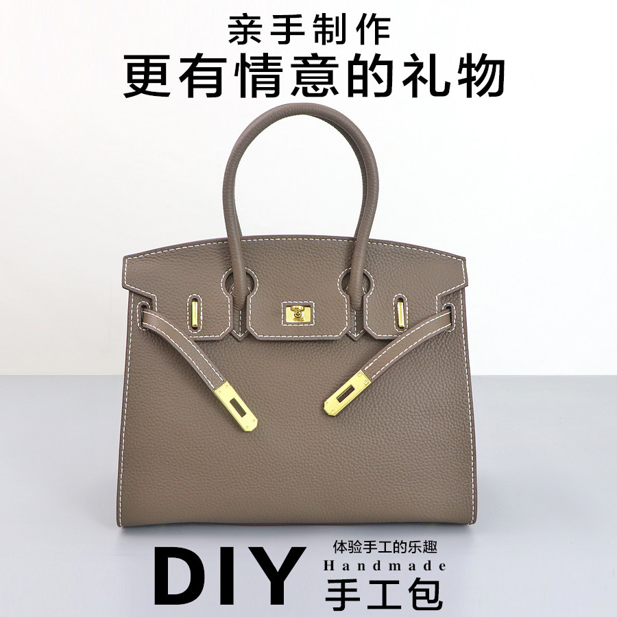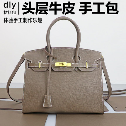 diy礼物手提包自制真皮缝制女包头层牛皮手工包外缝版铂金材料包