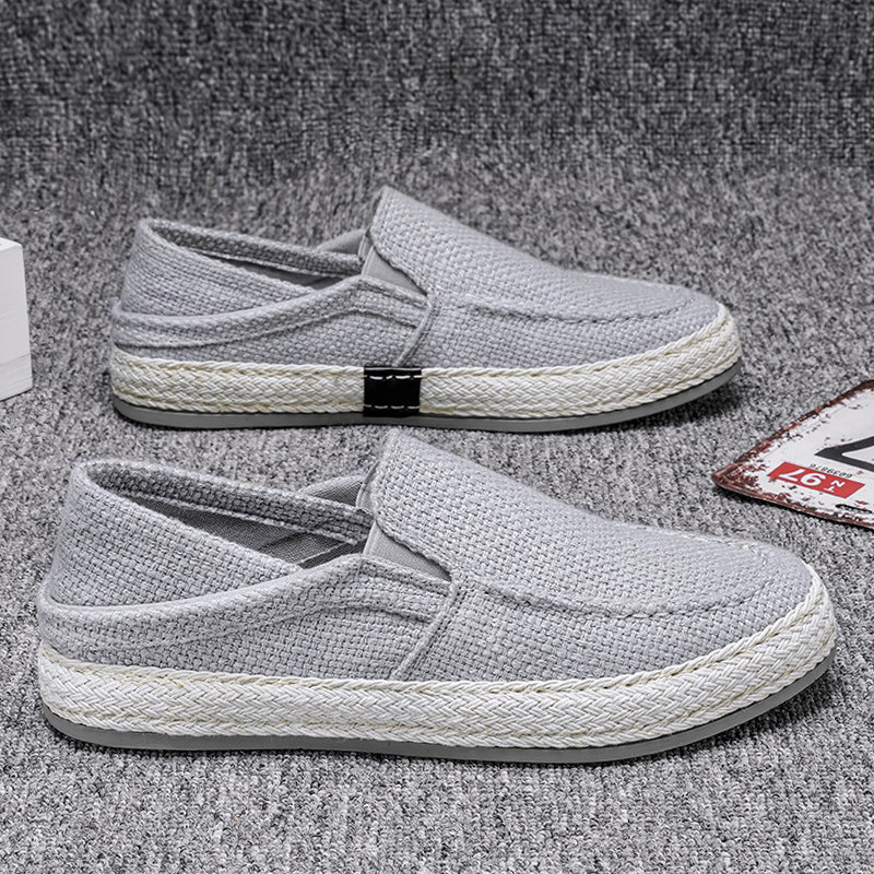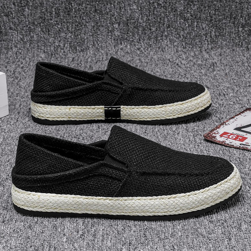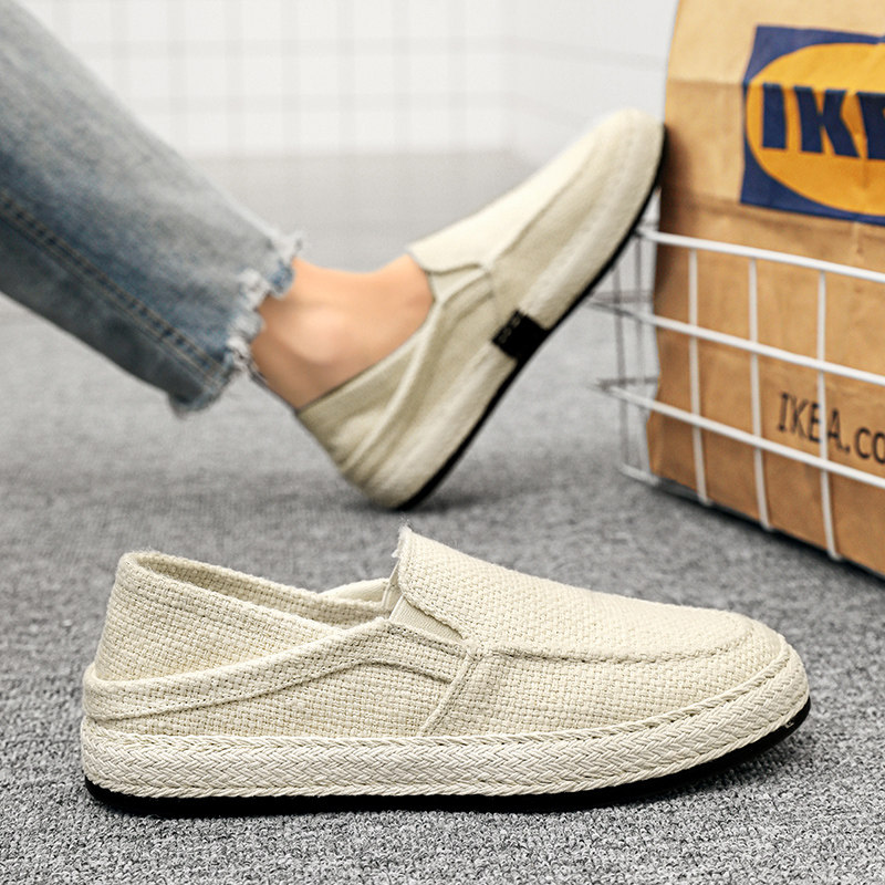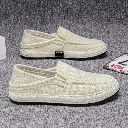 帆布男鞋夏季透气防臭懒人一脚蹬老北京亚麻布鞋休闲豆豆潮鞋子男