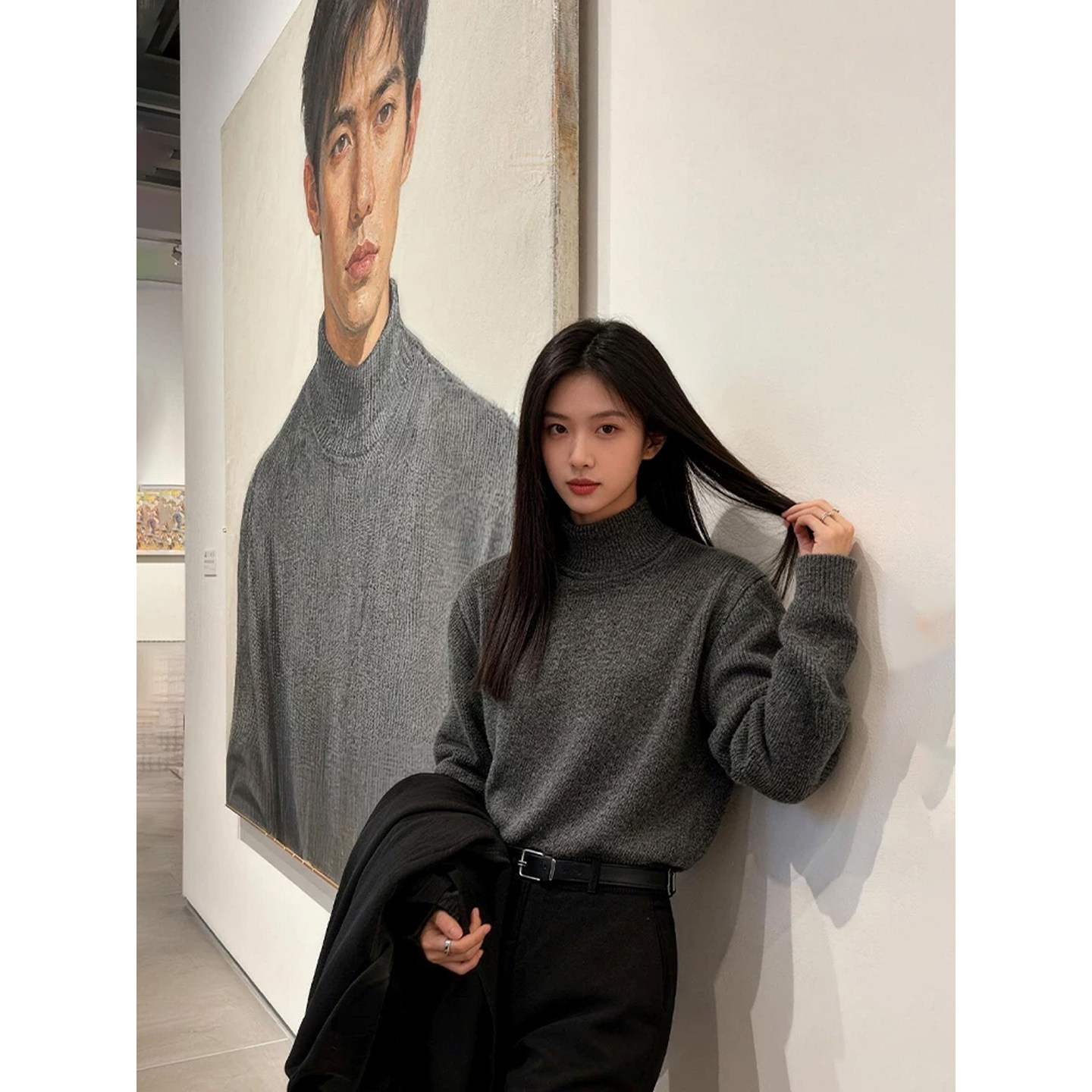 深灰色半高领毛衣男女春秋成熟稳重穿搭内搭打底衫韩系慵懒针织衫