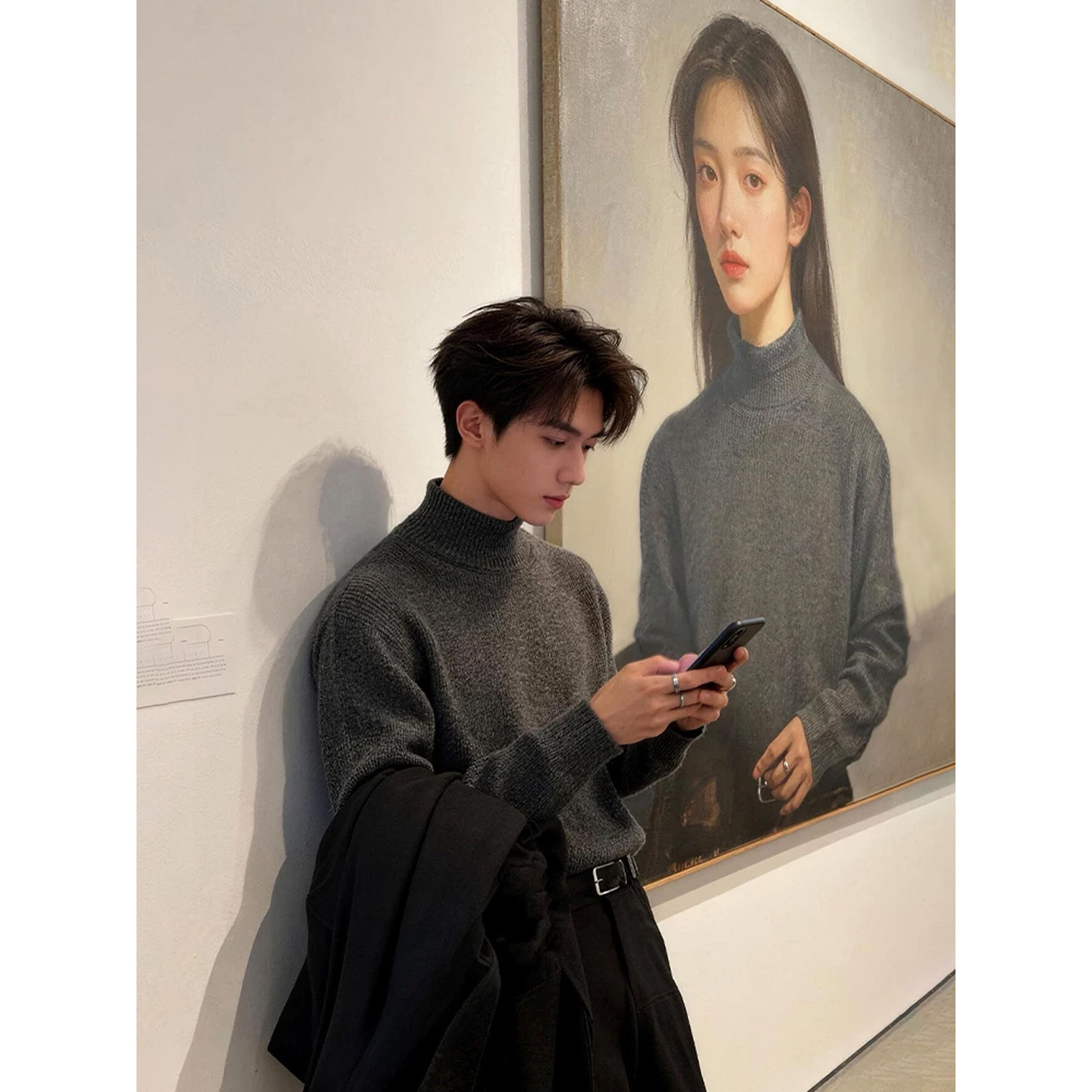 深灰色半高领毛衣男春秋成熟稳重