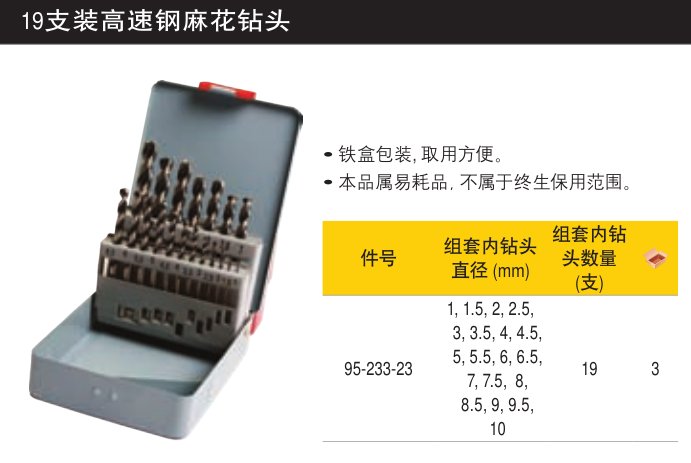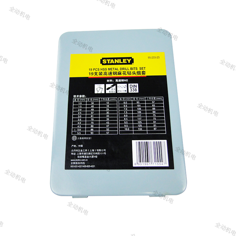 STANLEY 史丹利 高速钢 麻花钻头 19支 套装 1mm~10mm 95-233-23