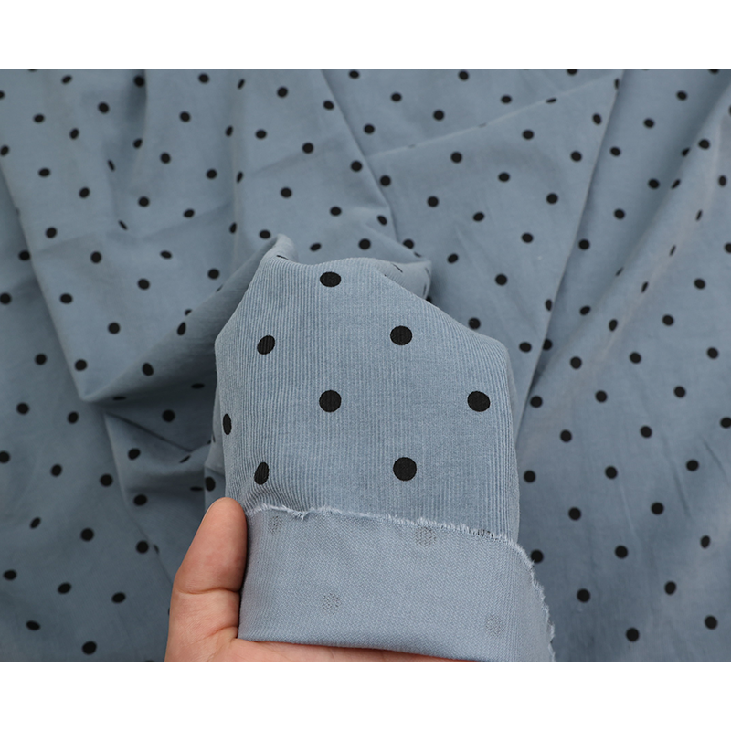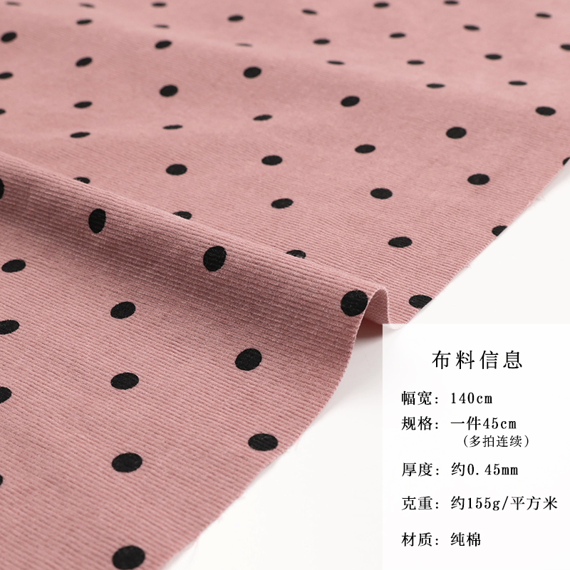 韩国进口纯棉灯芯绒布料裙子波点柔软舒适厚实秋冬连衣裙服装面料