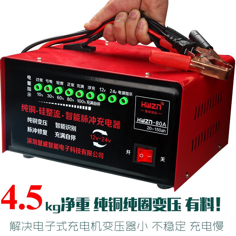 小车电瓶充电器拖拉机汽车AGM蓄电池全自动保护12V24V快速充电机