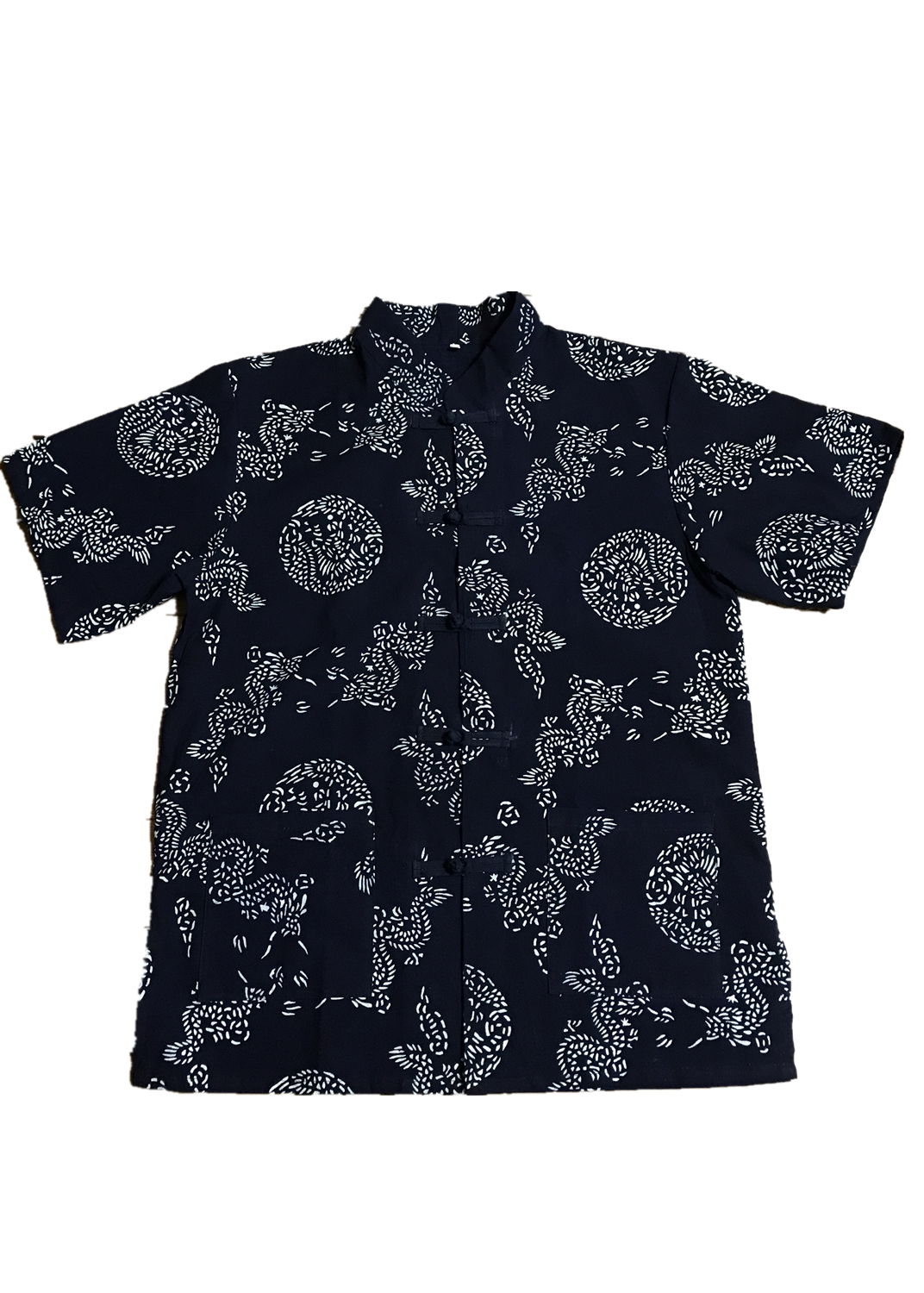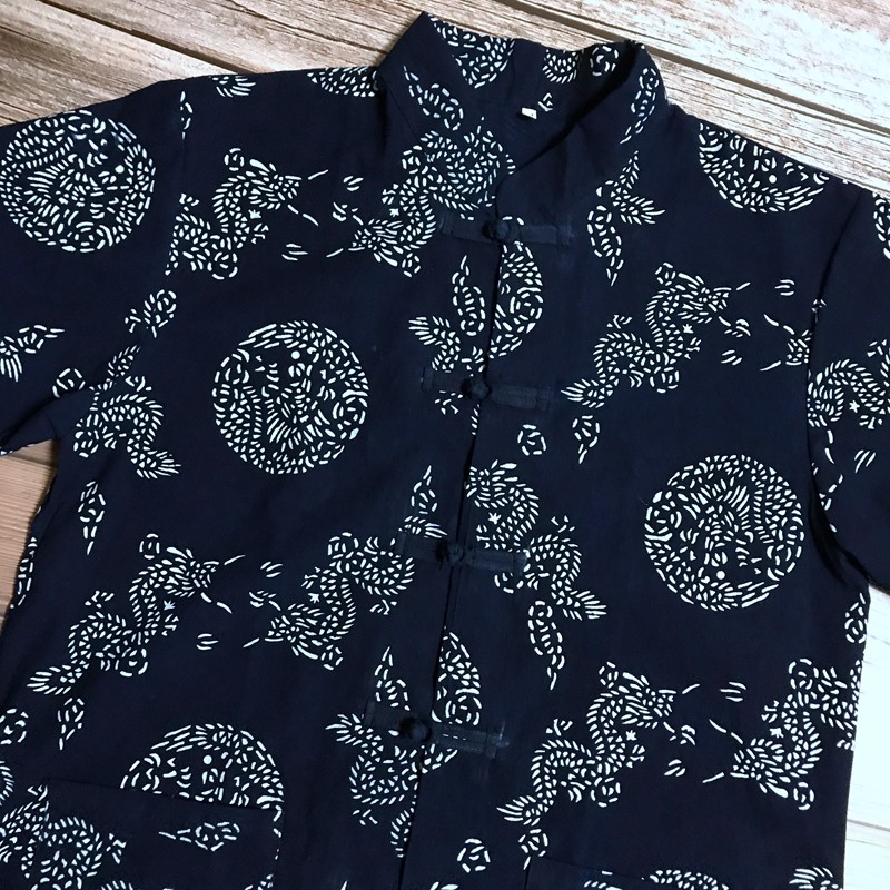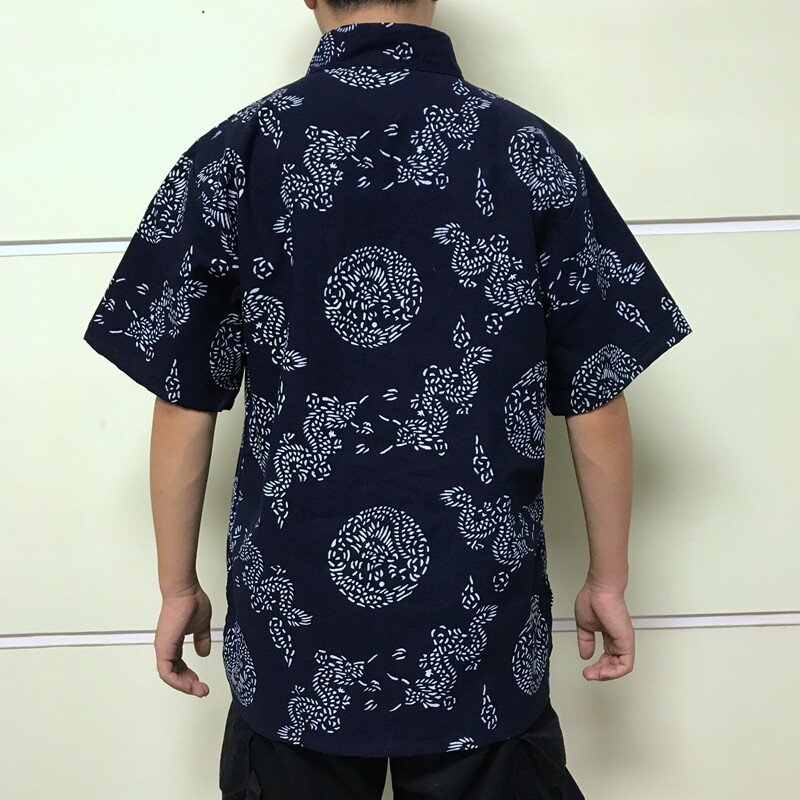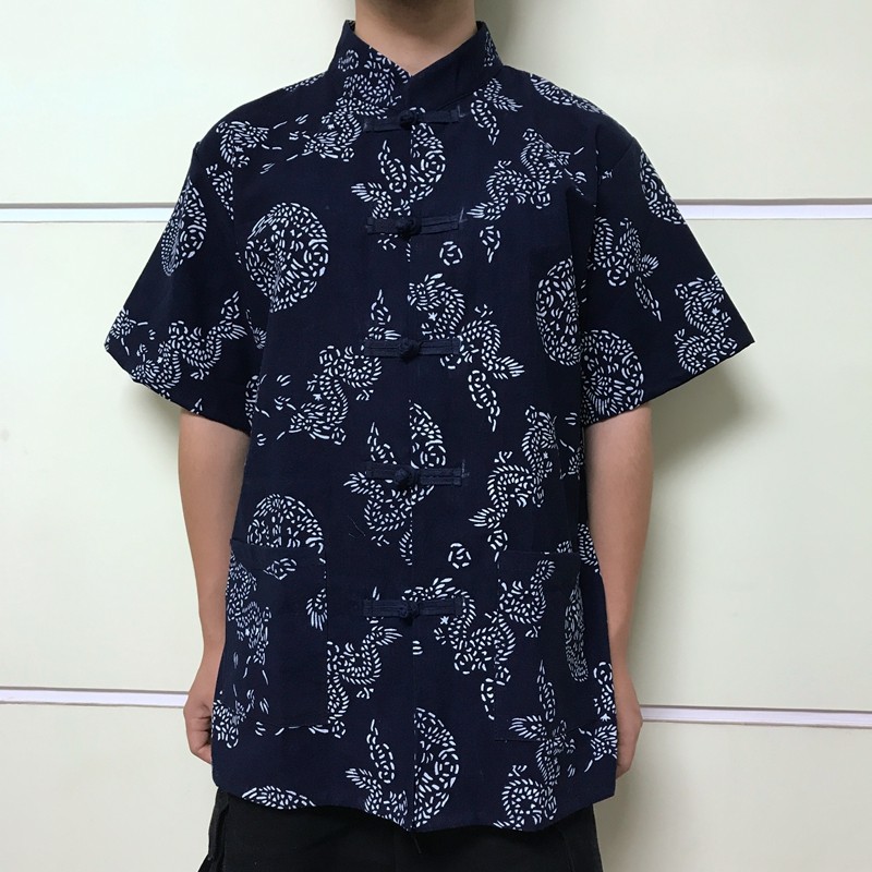 乌镇特色蓝印花布男装休闲男式短袖衬衫民族风纯棉立领中式唐装