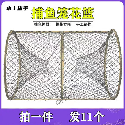 花篮鱼笼捕鱼网渔网黑鱼笼子甲鱼笼捕鱼花篮笼地网笼鱼网只进不出
