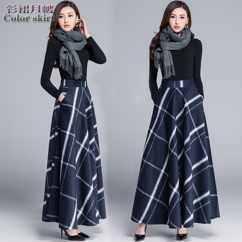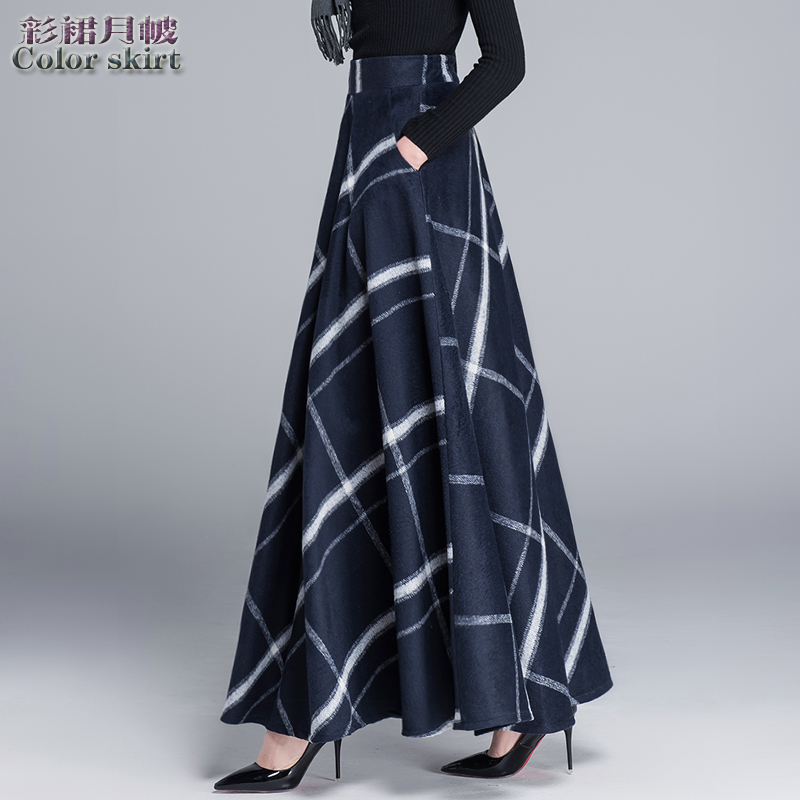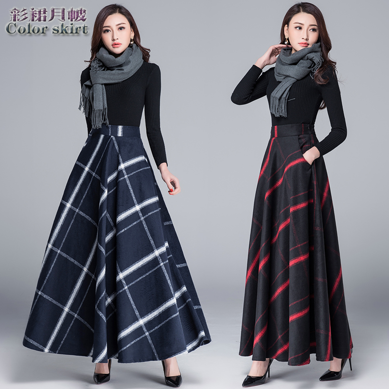 秋冬季保暖毛呢半身裙A字高腰显瘦中长裙大码百褶羊绒半身长裙女
