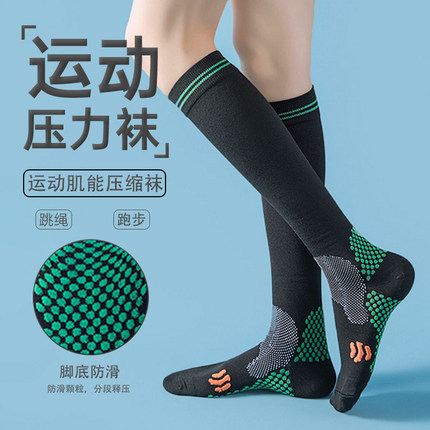 肌能压缩袜子女运动压力小腿袜专业跑步跳绳冬季长筒袜健身篮球男