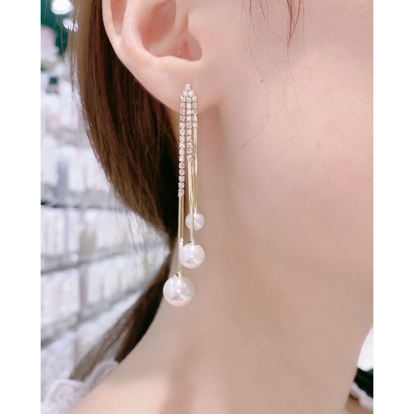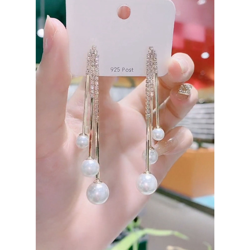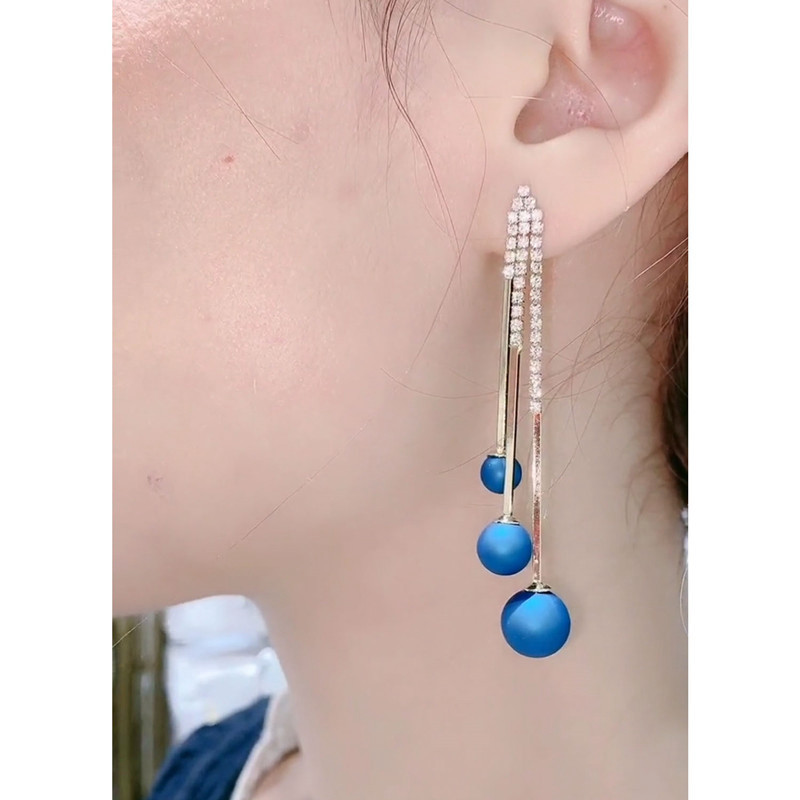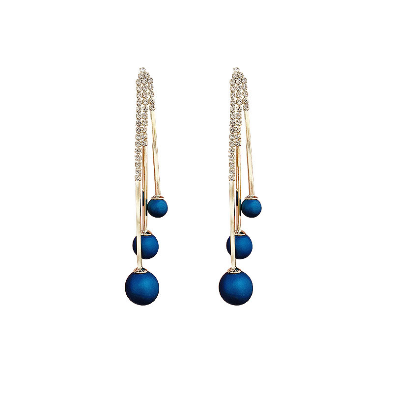 蓝色珍珠耳环女气质韩国2020年新款网红百搭长款显脸瘦的流苏耳饰
