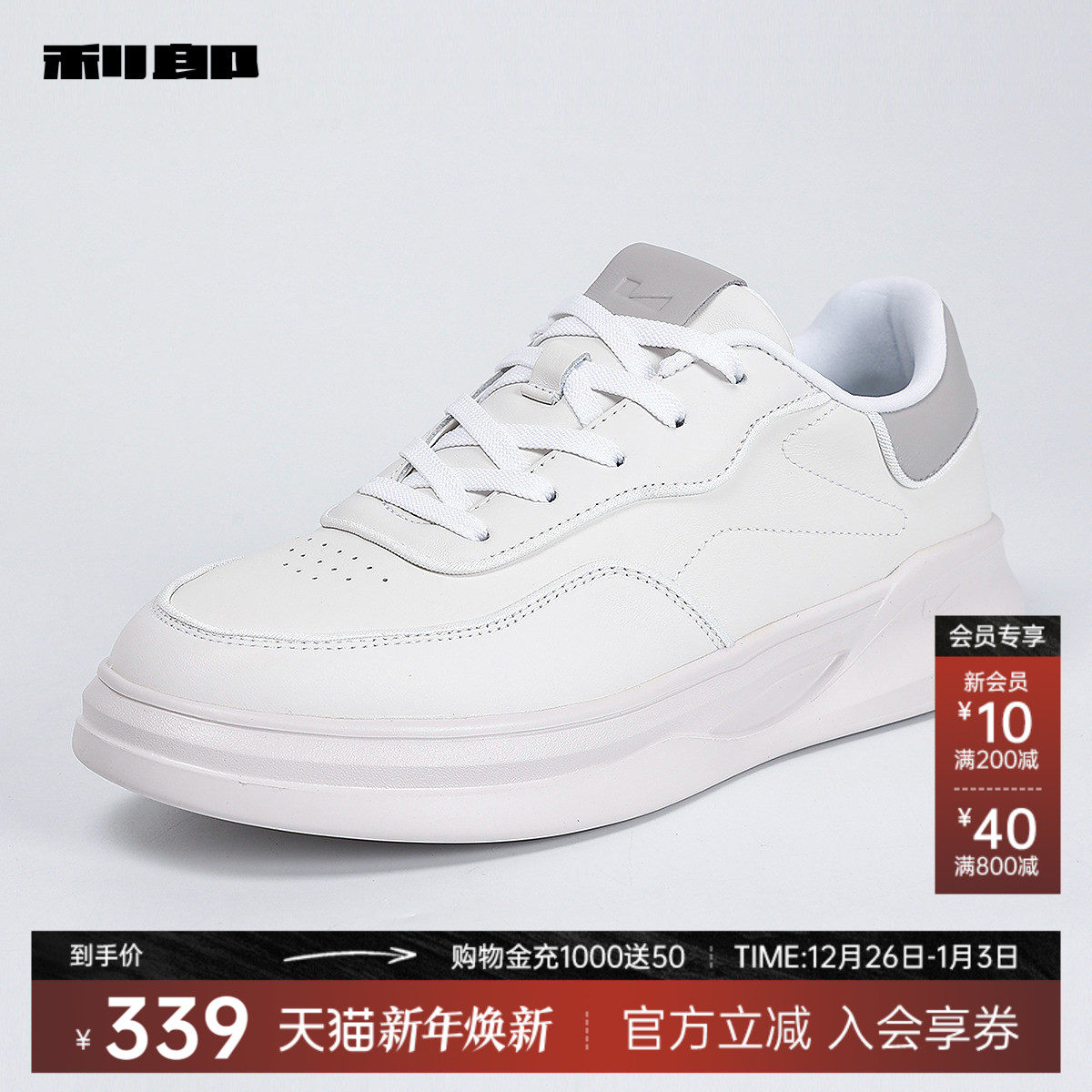 利郎奥莱头层牛皮休闲板鞋小白鞋