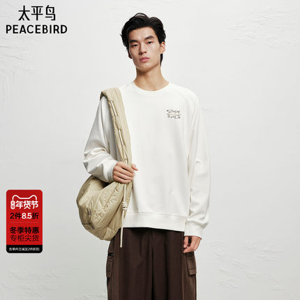 【商场同款】太平鸟男装 2025年冬季新款白色刺绣卫衣B2CRF4275+