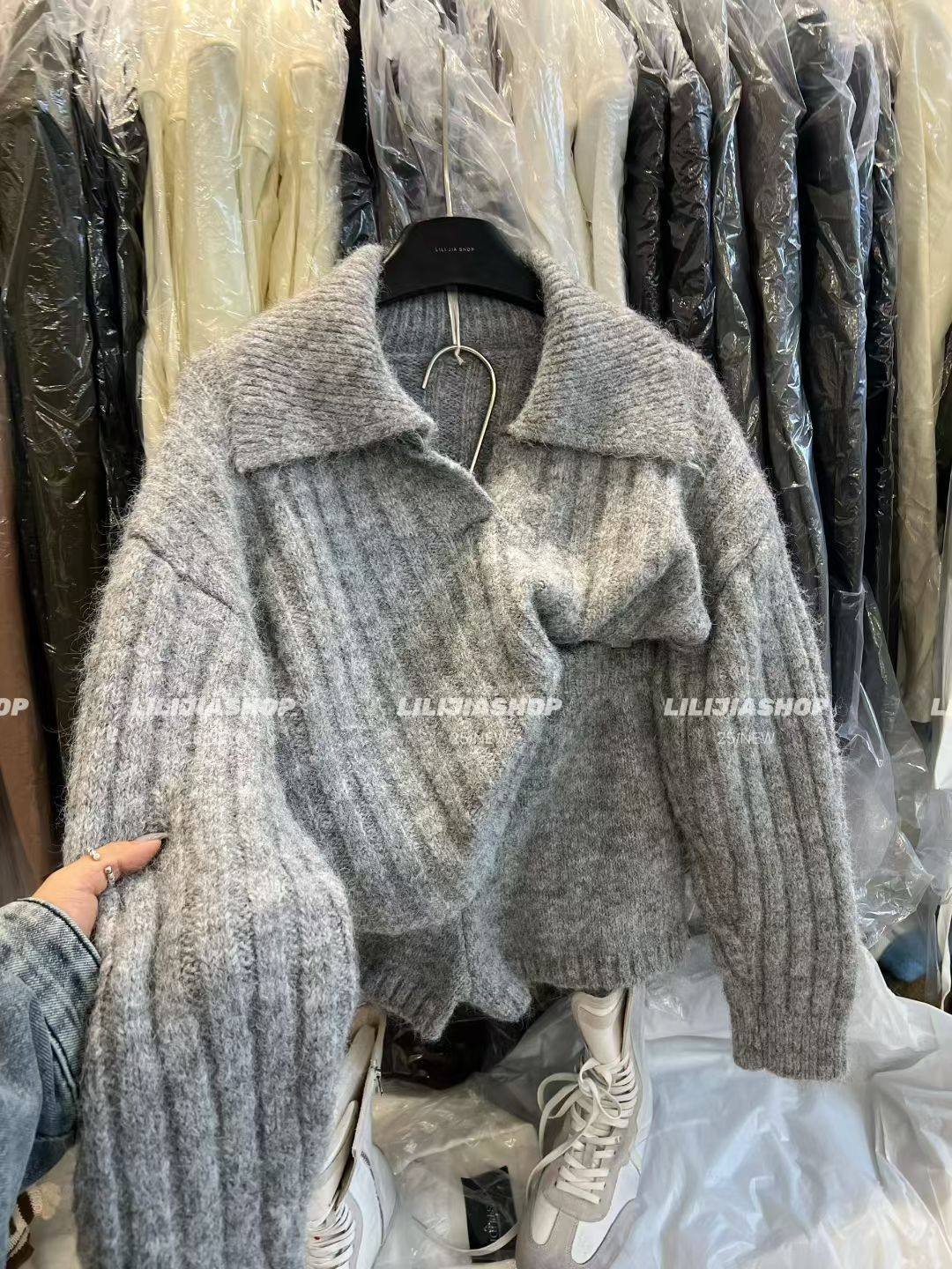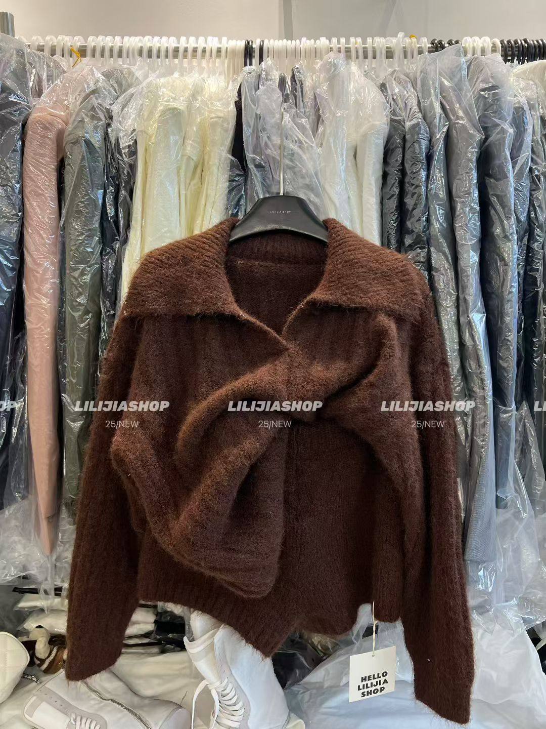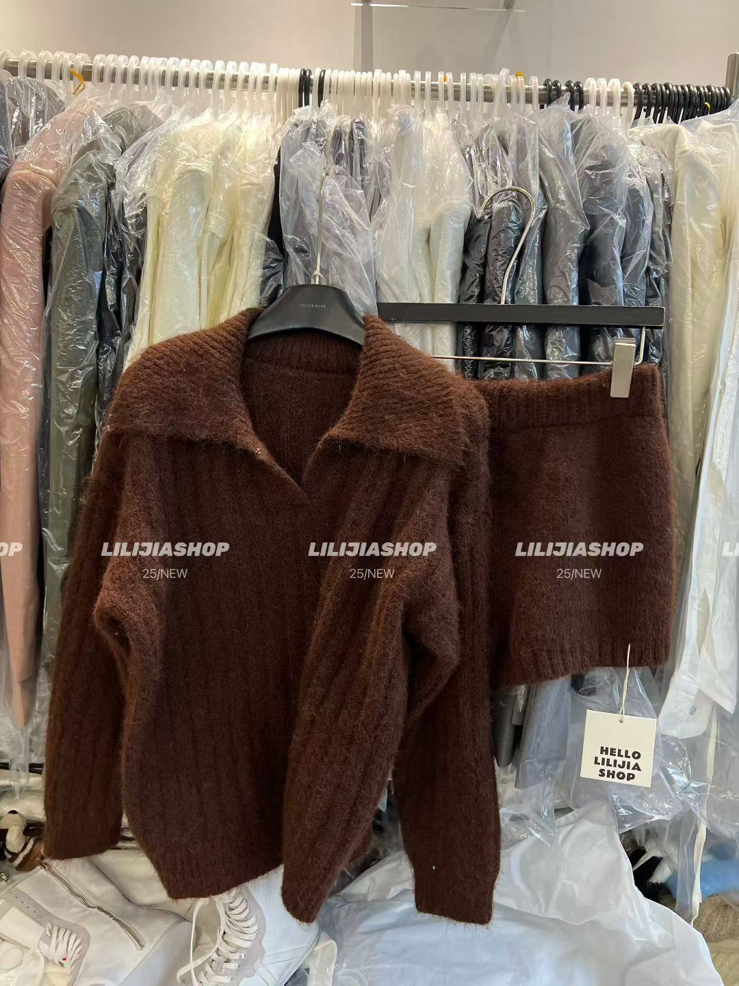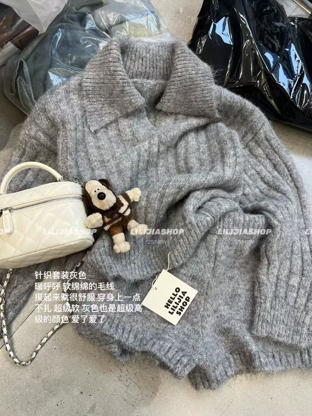 Miss家 2025秋新款韩版时尚百搭显瘦宽松翻领套头毛衣女短裤套装