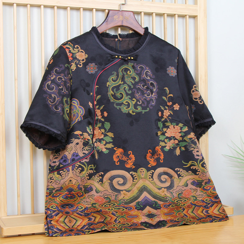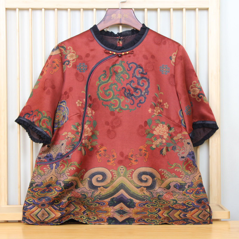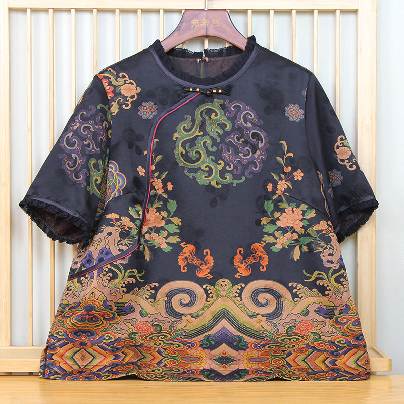 国风香云纱真丝上衣女短款