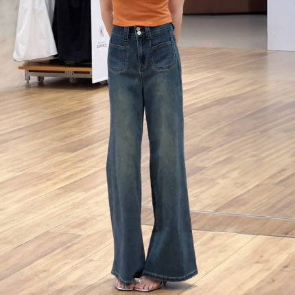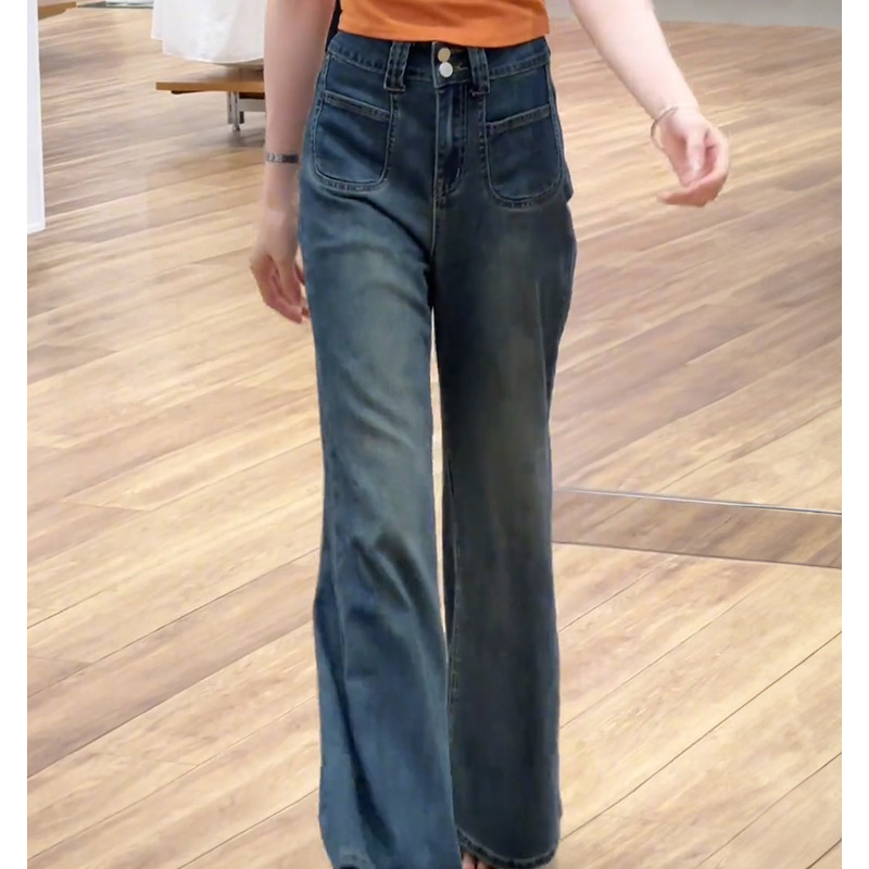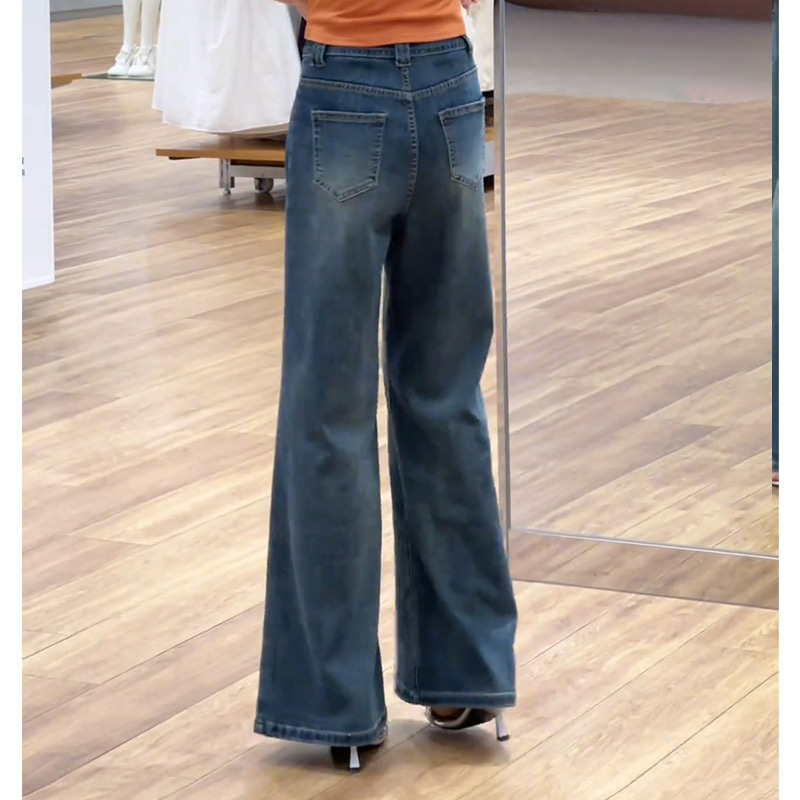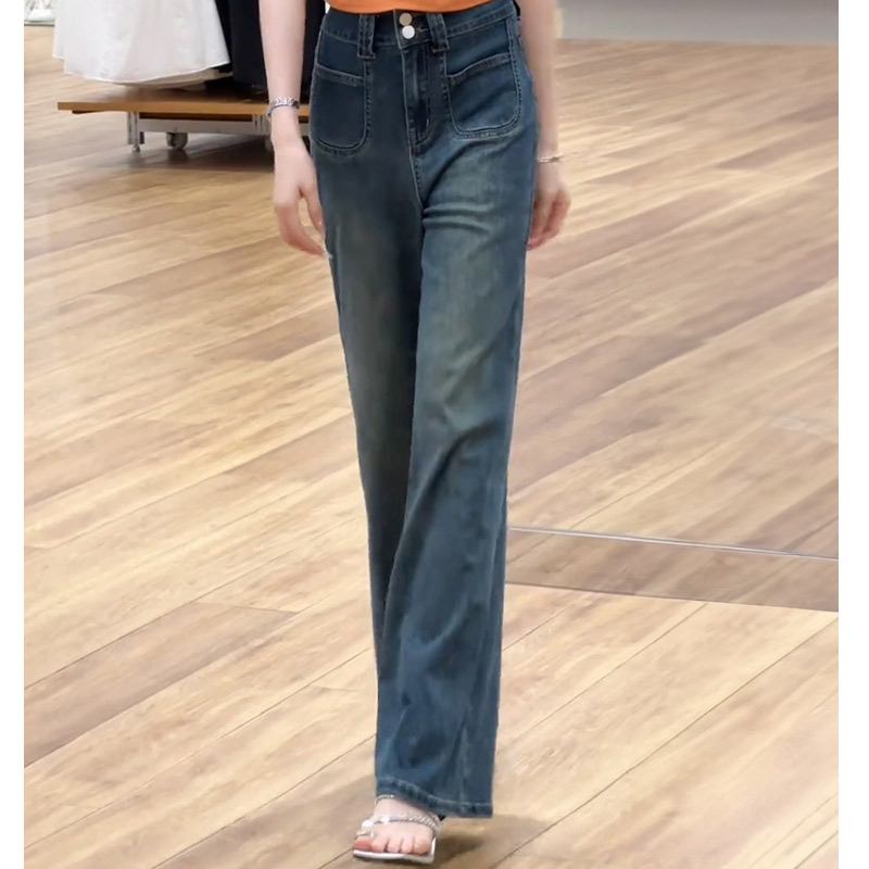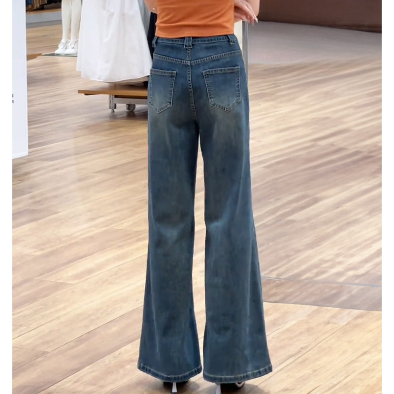 春秋新款复古阔腿牛仔裤女美式辣妹修身显瘦小个子不贴腿直筒裤子