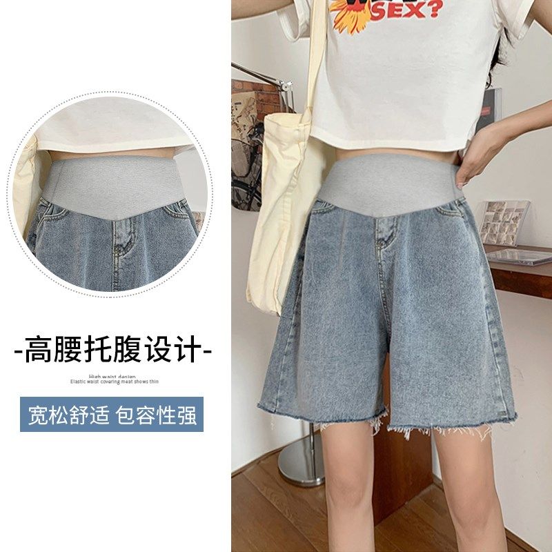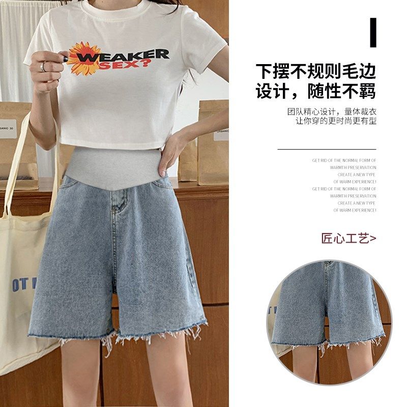 孕妇短裤夏季薄款外穿毛边牛仔阔腿裤孕早期打底五分中裤子女夏装