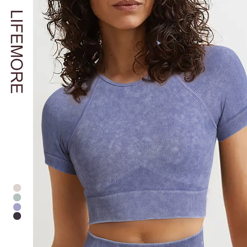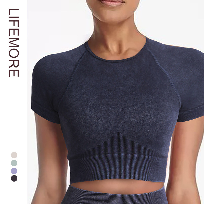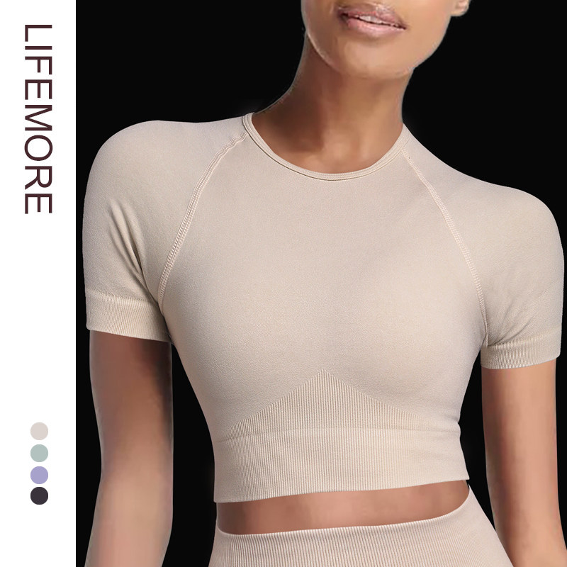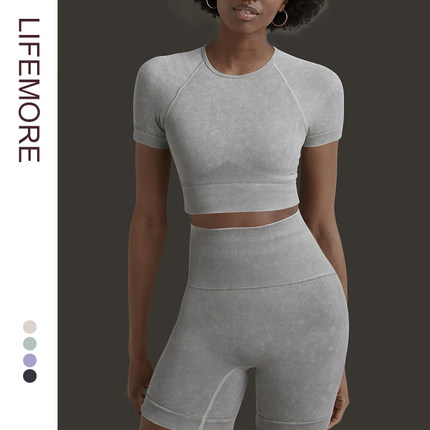 苏派淘短袖瑜伽服上衣运动套装无缝紧身露脐小T恤外穿健身罩女夏